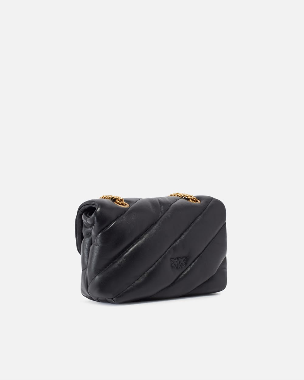 Mini Love Bag Puff in morbida nappa con maxi trapuntatura obliqua. La chiusura è completata dall'iconica fibbia in metallo Love Birds Diamond Cut. L'interno è foderato in microfibra scamosciata e comprende tramezza chiusa con zip e tasca a parete. La tracolla combina la classica catena metallica rotonda al pratico spallaccio in nappa.