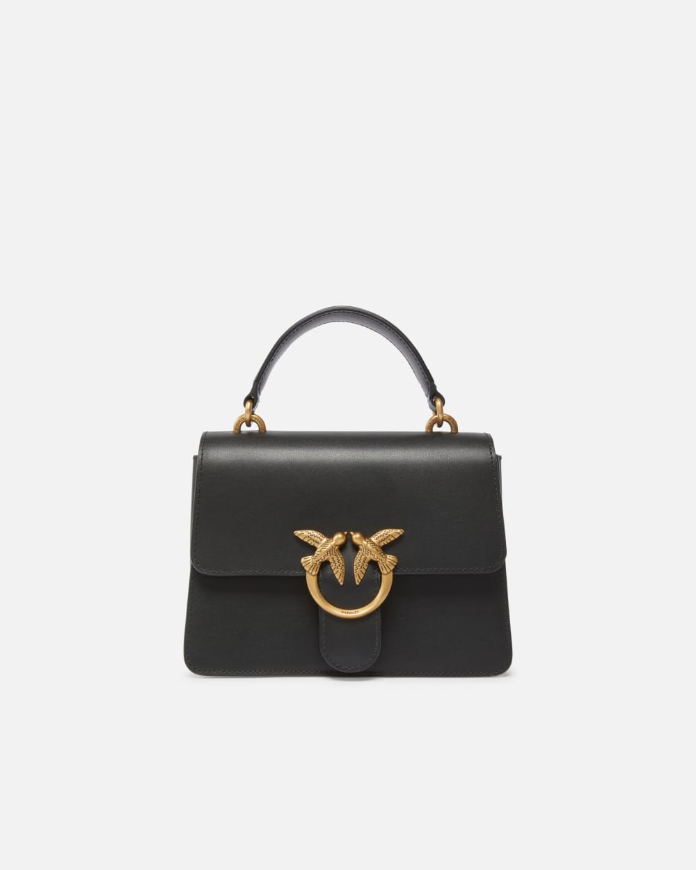 Mini Love Bag One Top Handle Light in morbida pelle mano seta, dal design decostruito e leggero. La chiusura è completata dall'iconica fibbia in metallo Love Birds Diamond Cut. L'interno è foderato in microfibra scamosciata e comprende tasca a parete con zip. Manico singolo top handle e tracolla regolabile e rimovibile in pelle.