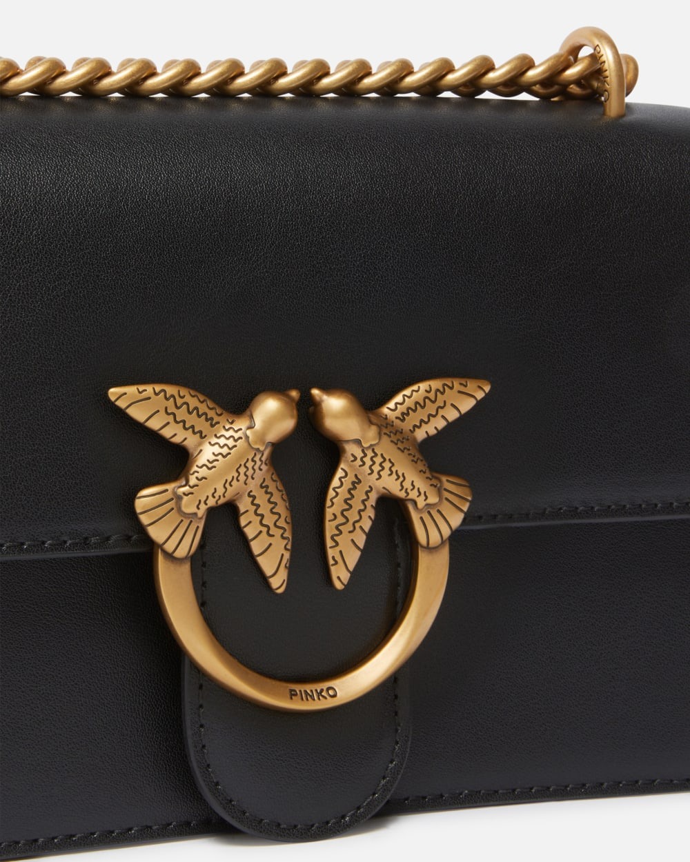 Mini Love Bag One in morbida pelle mano seta. La chiusura è completata dall'iconica fibbia in metallo Love Birds Diamond Cut in metallo. L'interno è foderato in microfibra scamosciata e comprende tramezza chiusa con zip e tasca a parete in pelle. La tracolla combina la classica catena rotonda al pratico spallaccio in pelle regolabile.