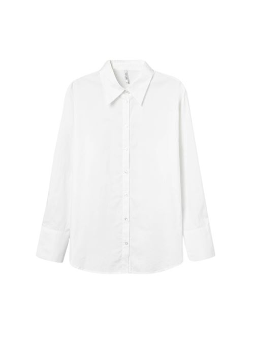 Camicia con colletto a revers e maniche corte. Chiusura frontale con bottoni.