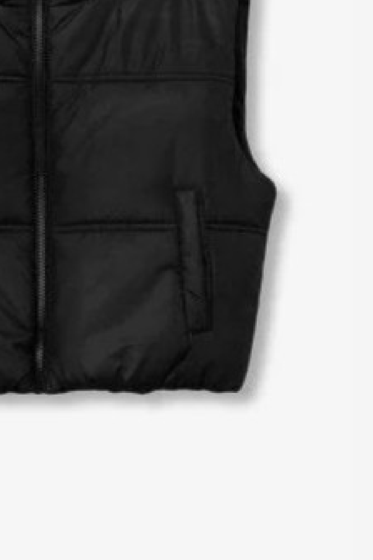 * Gilet corto imbottito con zip frontale* Tasche laterali con chiusura nascosta* Collo alto per maggiore comfort* Linea moderna e taglio regolare* Ideale per abbinamenti casual e sportivi