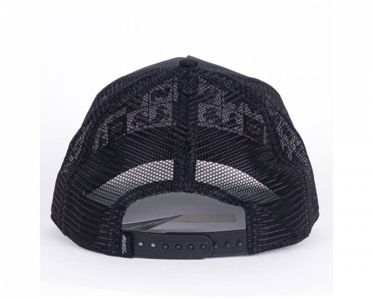 L'elemento di maggior rilievo del Trucker del marchio Goorin Bros. è l'inserto in rete posto dietro la nuca, che assicura sempre una gradevole freschezza. La larghezza del cappellino snapback, aperto dietro la nuca, è regolabile tramite fascetta con automatico per una perfetta vestibilità. La visiera ricurva è lunga 7 cm, mentre l'altezza della calotta è di 11 cm.