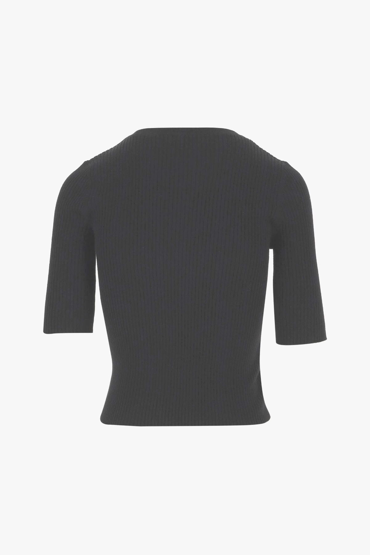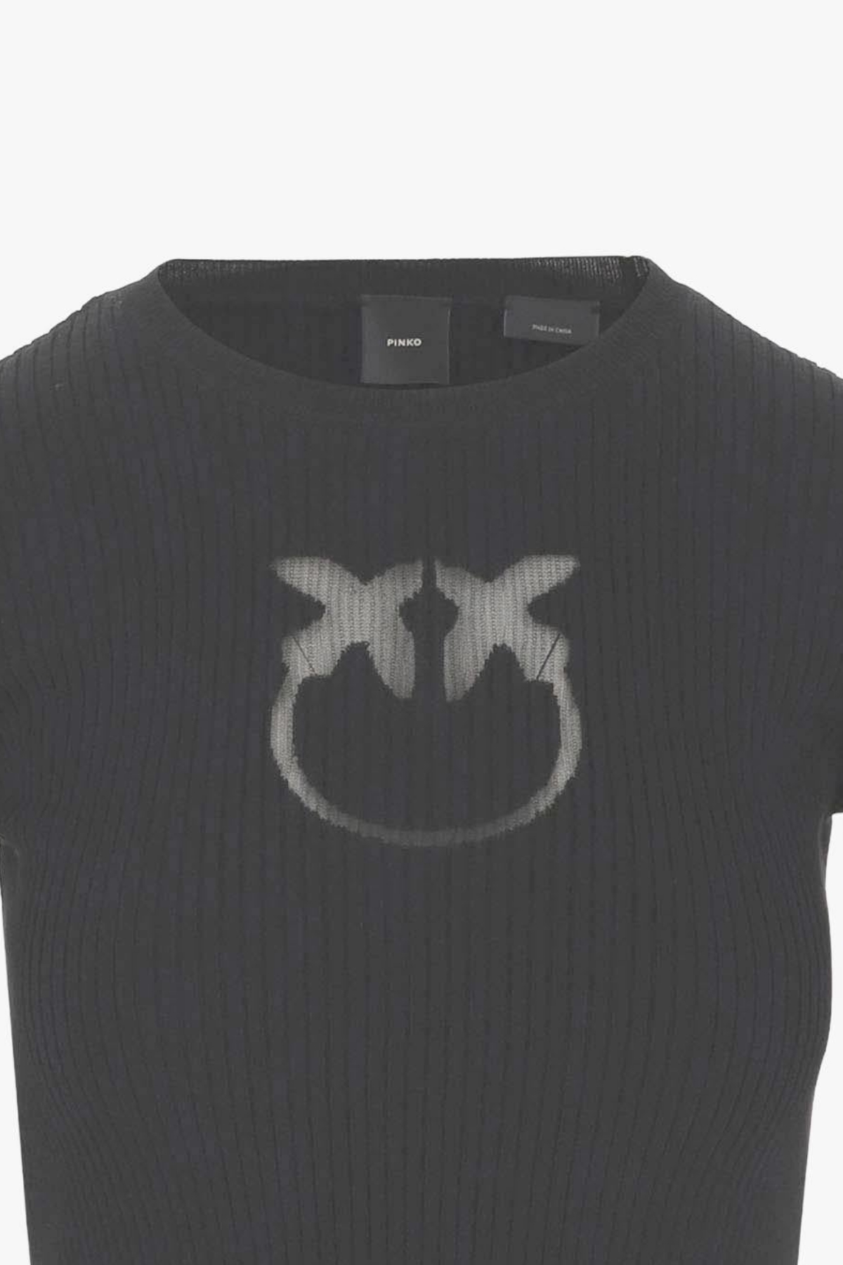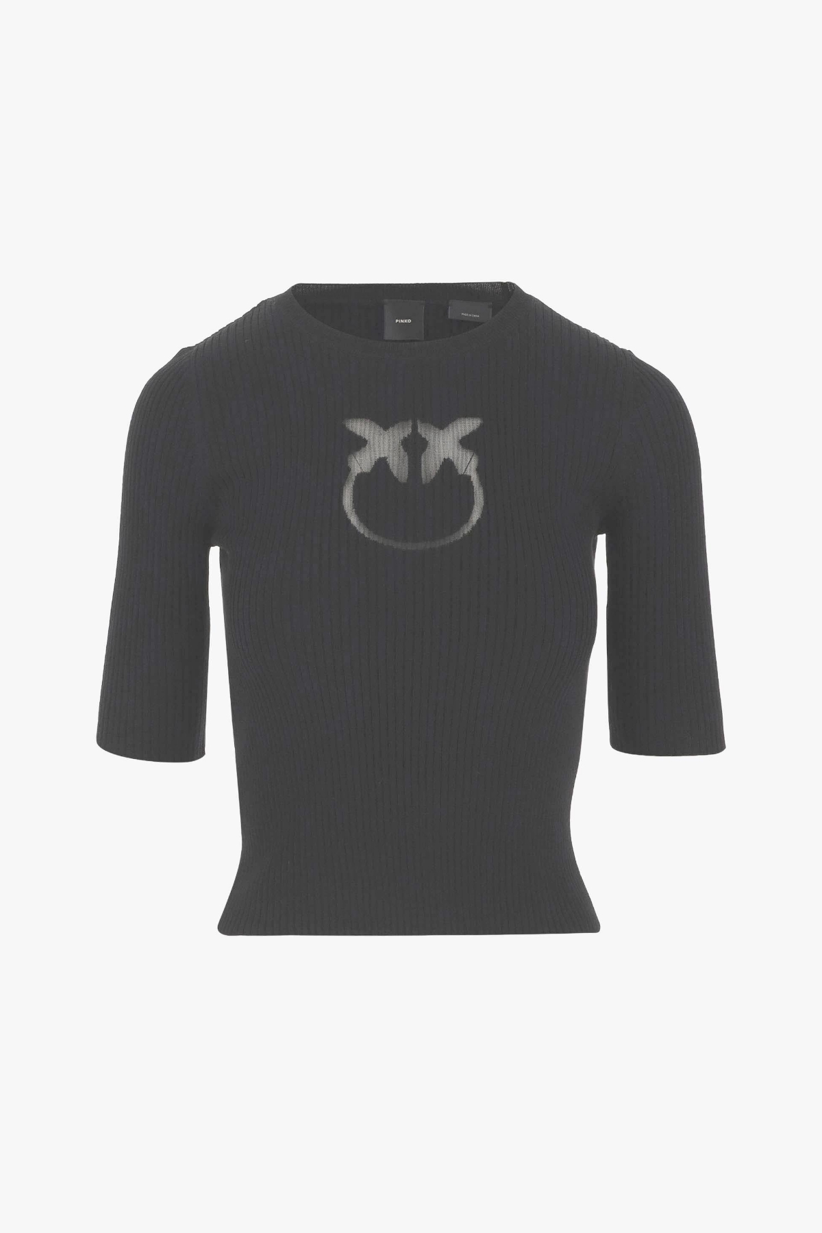 Pullover realizzato in misto lanaGirocolloDettaglio Love BirdsManiche corteLavorazione a coste