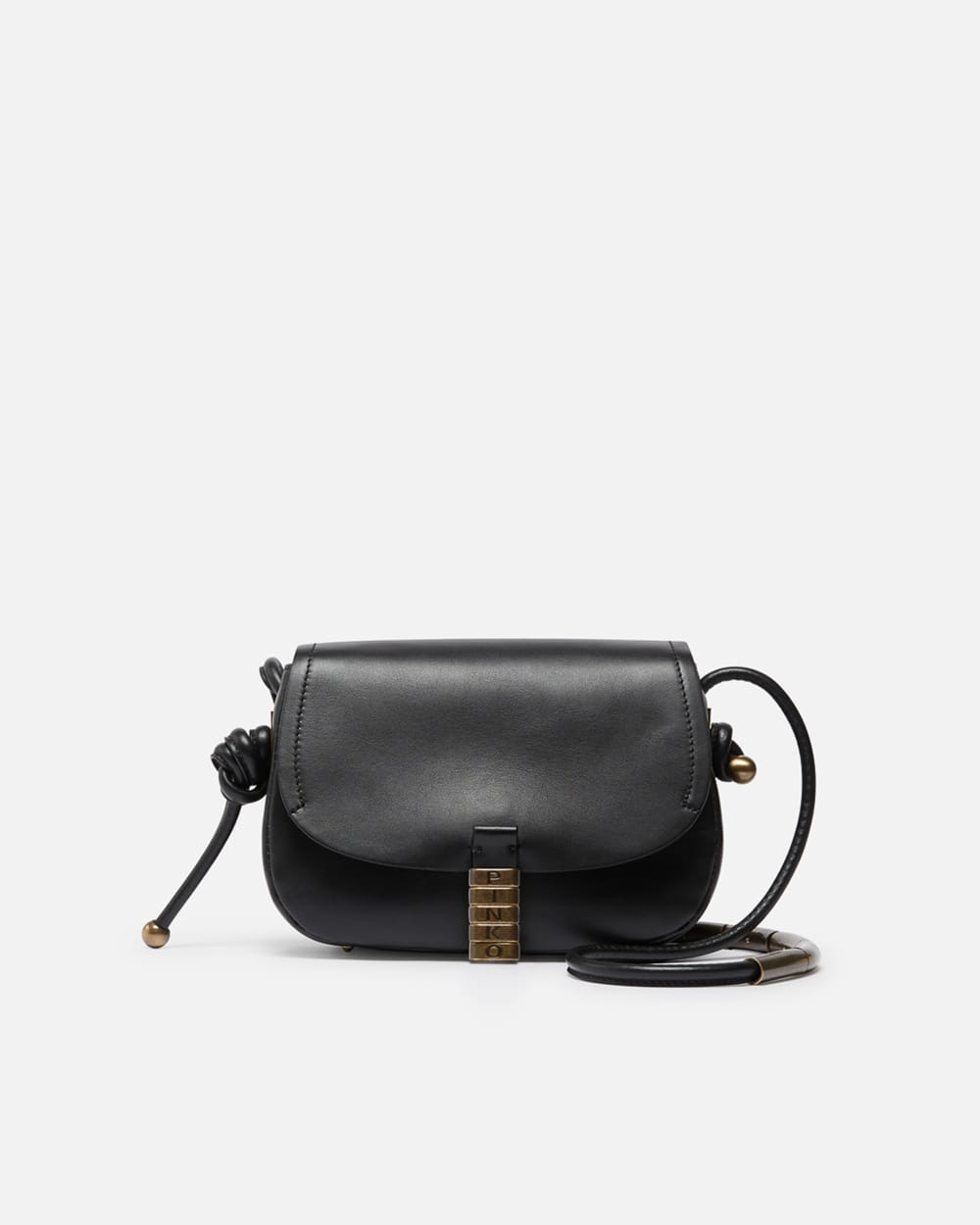 Piccola borsa da giorno a tracolla Mini Saddle Bag realizzata in morbida pelle liscia. La borsa semirigida è chiusa con patta, rifinita con dettaglio metallico personalizzato con logo, ed è foderata in tessuto scamosciato all'interno, dove è presente anche una pratica tasca a parete chiusa con zip. La tracolla in pelle, personalizzata con inserti metallici, nodi e finalini a forma di sfera, permette di indossare la borsa comodamente in ogni occasione. Attiva la tua borsa PINKO: verifica l'autenticità del tuo prodotto e accedi all'esperienza personalizzata avvicinando il tuo smartphone al ricamo Love Birds che trovi sul retro della borsa!
