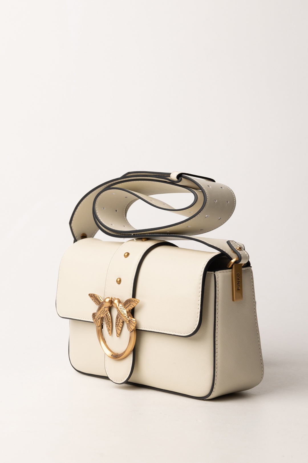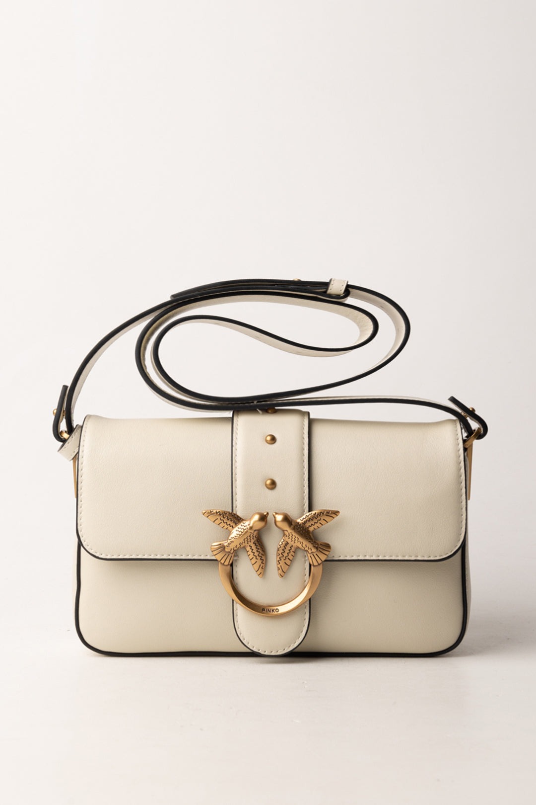 Piccola borsa a spalla in pelle Mini Love Bag Slouchy, che si caratterizza per una forma morbida, destrutturata, quasi come fosse una piccola sacca da viaggio. La borsetta è completa di spallaccio in pelle, regolabile con fibbia, per portare la borsa a spalla e di tracolla a catena con spallaccio in pelle, per personalizzare la borsa a seconda delle necessità. Per un tocco di stile in più, soprattutto nelle occasioni speciali, puoi portare la Mini borsa anche a mano. La chiusura con patta è completata da baccello e fibbia con l'iconico logo uccellini Love Birds Diamond Cut, in metallo galvanica antique gold. L'interno della borsetta è foderato in tessuto drill di cotone e include anche una tasca a parete in pelle. La Mini Love Bag dalla forma morbida è l'update più contemporaneo dell'iconica borsa di PINKO, e completa con un tocco di stile qualsiasi look con il quale la indosserai. Attiva la tua borsa PINKO: verifica l'autenticità del tuo prodotto e accedi all'esperienza personalizzata avvicinando il tuo smartphone al ricamo Love Birds che trovi sul retro della borsa!