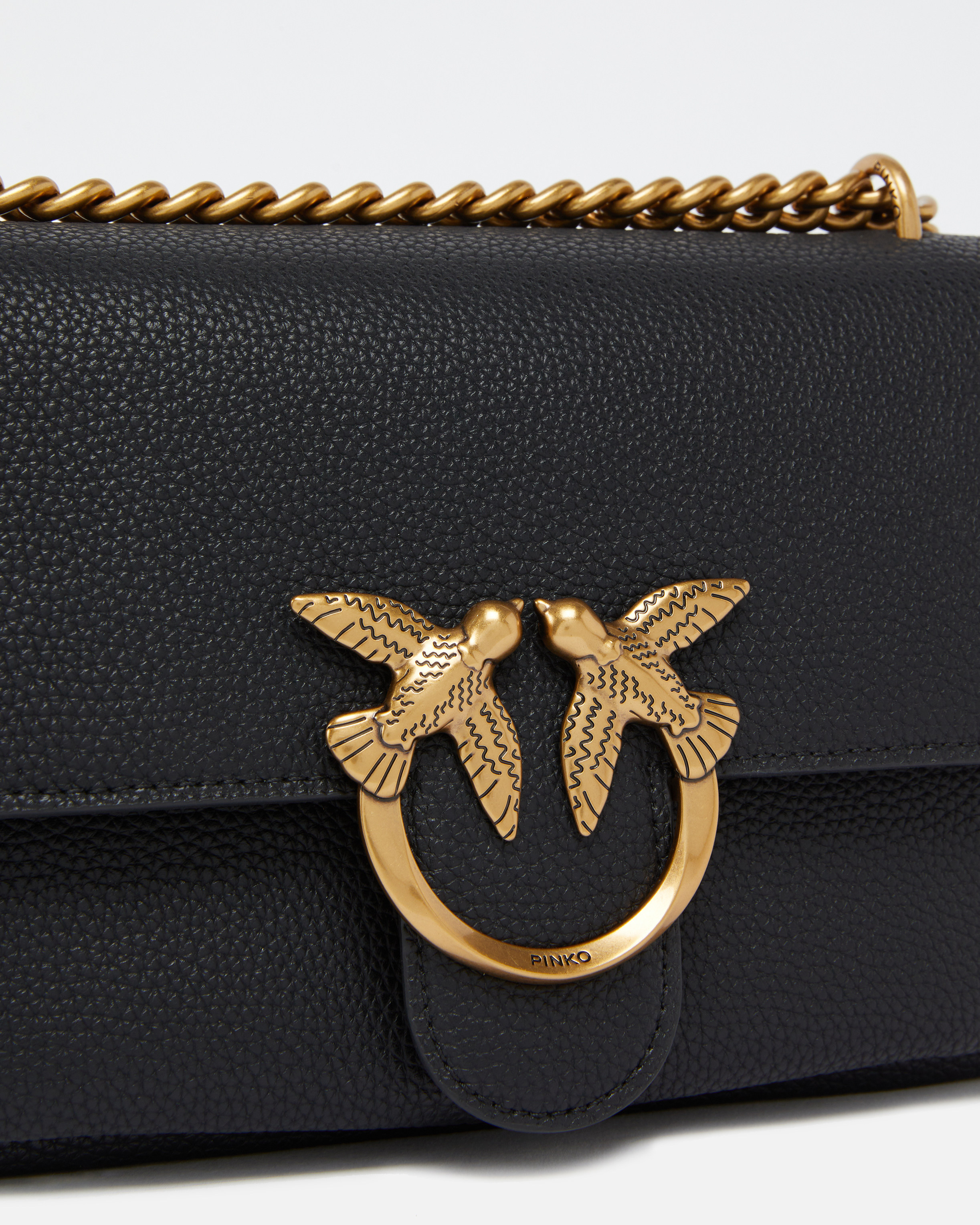 Borsa a tracolla Mini Love Bag Soft dalle piccole dimensioni realizzata in pregiata pelle bottalata. La borsa è caratterizzata da una forma morbida, con tasca davanti chiusa con zip, interno foderato in microfibra scamosciata e chiusura con patta completata con l'iconica fibbia Love Birds Dimaond Cut in metallo, galvanica antique gold. Grazie alla pratica tracolla scorrevole, completa di spallaccio regolabile in pelle, è possibile indossare la borsetta anche a spalla, doppiando la catena della tracolla.