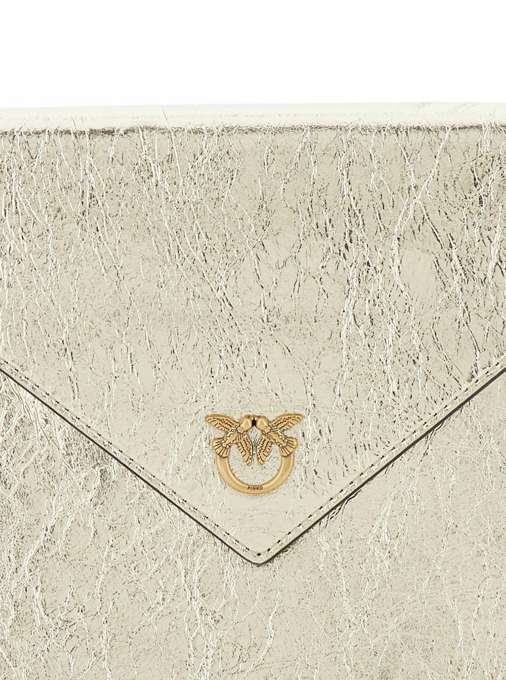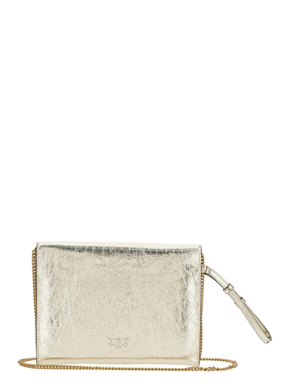 piccola pochette con patta in pelle metallizzatapelle metallizzatalogo color orotracolla a catena