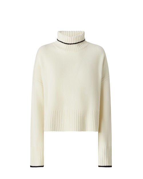 Dolcevita a maniche lunghe in misto lana merino e cashmere, ideale per scaldare i tuoi outfit della stagione fredda. Essenziale e contemporaneo, questo design diventerà il protagonista indiscusso di tutti i tuoi outfit, qualunque sia l'occasione. Il filato a contrasto su scollo e polsini dona un tocco di vivacità al design. Scollo, orlo e polsini sono lavorati a coste, mentre il tocco finale è dato dall'etichetta con logo lettering PINKO sul retro. Il capo è stato sottoposto a prove di finissaggio per ridurre al minimo la possibile formazione di pilling, garantendo una maggiore morbidezza e durabilità del tessuto.