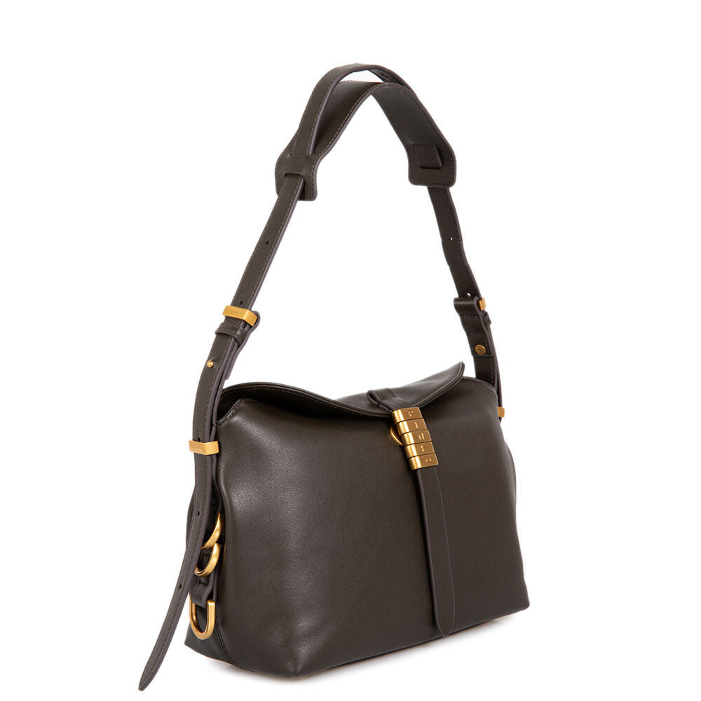 * Borsa a spalla in pelle liscia con chiusura a patta