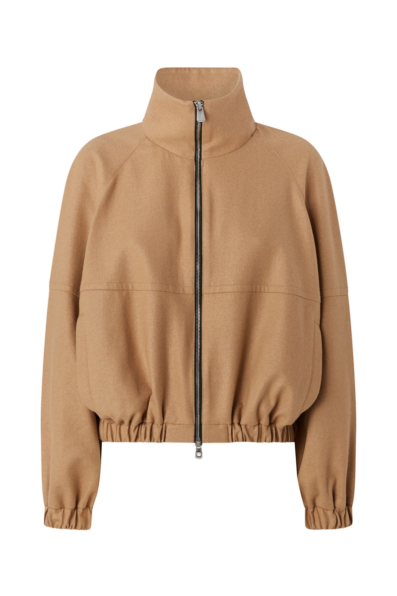 Bomber dalla vestibilità regular realizzato in flanella di jersey di misto lana tinto in filo, un tessuto perfetto per combinare morbidezza, elasticità e comfort. Il capo presenta un avvolgente collo in piedi, una funzionale chiusura frontale con zip e comode tasche laterali, ed è reso ancora più pratico dall'orlo e dai polsini elasticizzati. Abbraccia lo stile sportivo con questo modello pratico e versatile, da indossare nel tempo libero o durante le occasioni più casual.