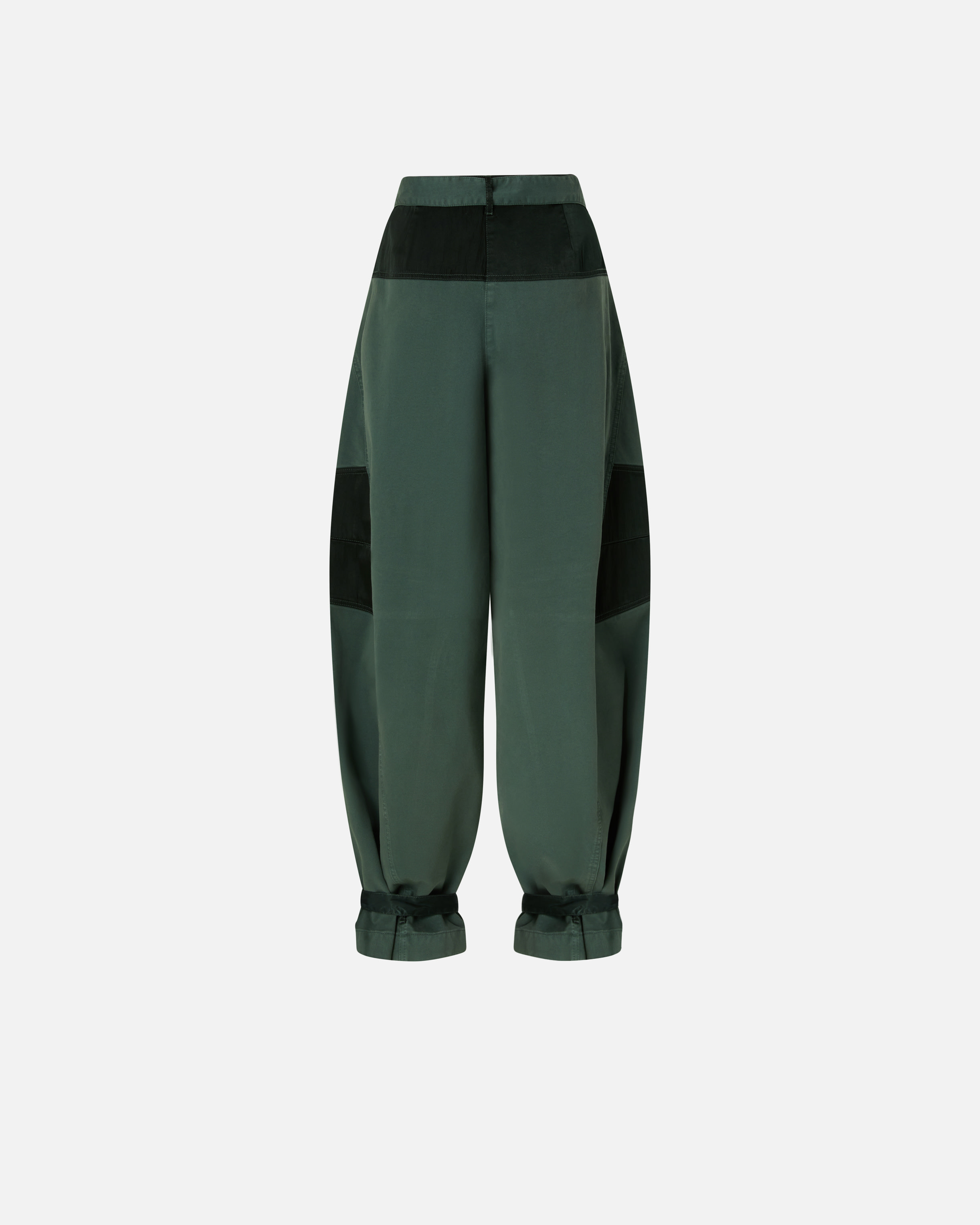 Pantaloni con gamba barrel molto ampia e arrotondata, realizzati in cotone con sezioni in raso tinto in capo, per creare un contrasto di tessuti tipico dell'universo PINKO. Il modello presenta passanti per cintura, impunture, tagli e inserti che lo rendono un vero e proprio emblema dello stile utility, ed è completato da una cintura abbinata da annodare in vita e da cinturini sul fondo regolabili per personalizzare la vestibilità e lo styling. Abbraccia lo stile sportivo e funzionale con questo capo contemporaneo, ideale da indossare nelle occasioni più casual.
