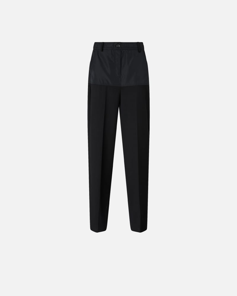 Pantaloni lunghi dalla vestibilità skinny, realizzati in tessuto in misto lana con armatura diagonale dalla mano smerigliata e fluida. Il modello presenta passanti in vita e tasche a filetto con bottone sul retro ed è caratterizzato da un inserto in taffetà tono su tono, a contrasto con il materiale principale. Dai una svolta informale ai tuoi look per l'ufficio con questa rivisitazione innovativa in pieno stile PINKO.