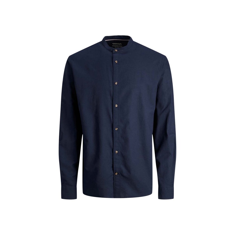 Camicia dal taglio classico, colletto alla coreana, maniche lunghe, chiusura tramite bottoni, tinta unita, vestibilità regular