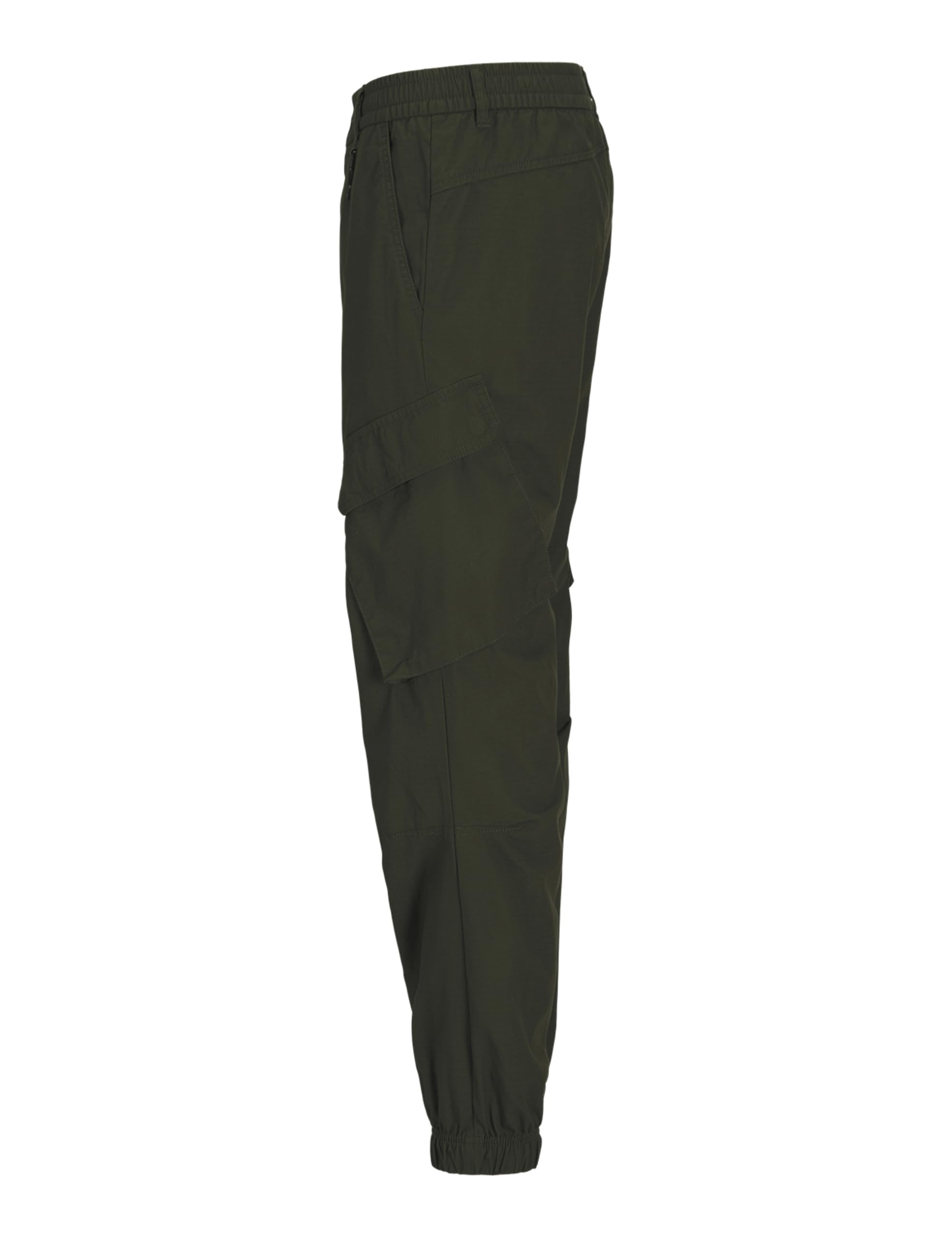 * Pantaloni cargo jogger* Vita elasticata con bottone e zip* Tasche laterali con pattina e zip diagonale* Fondo gamba con polsini elasticizzati* Tessuto resistente e comodo* Stile casual e sportivo