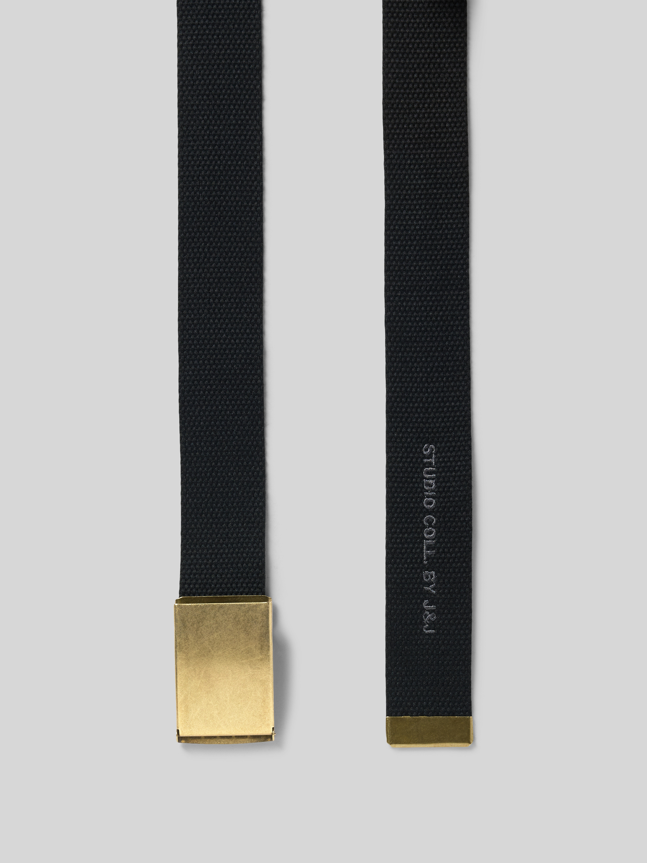 Cintura in tessutoFibbia a placca in metalloChiusura regolabile a scorrimentoPuntale metallicoLogo ricamato
