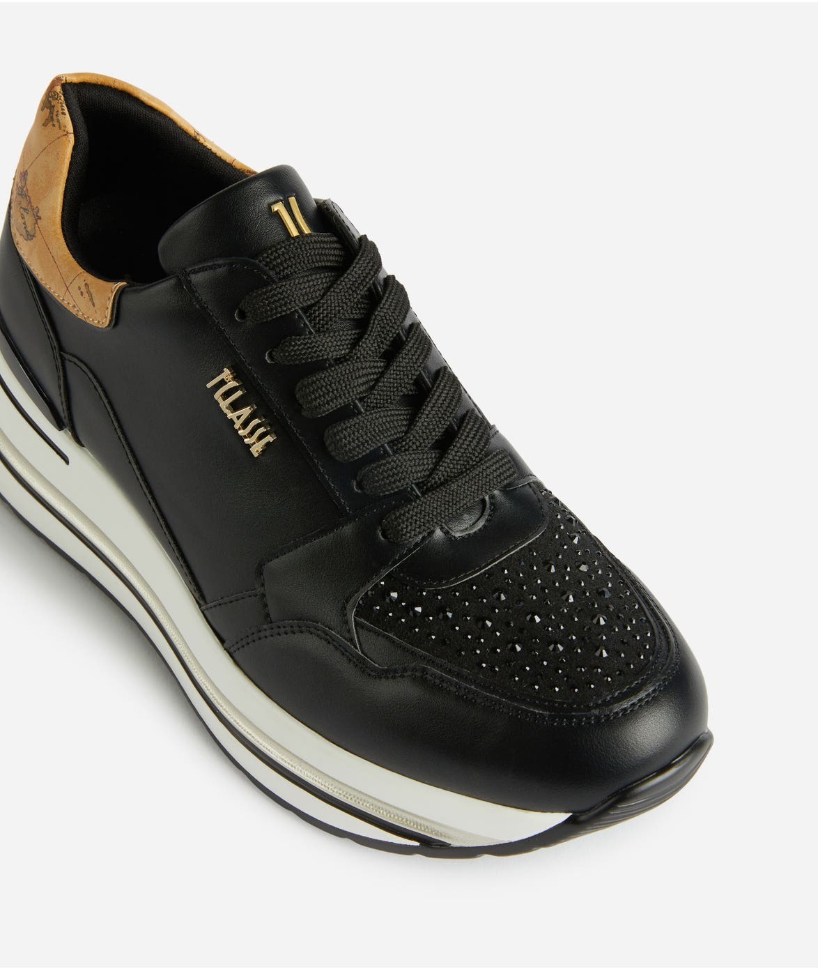 Dettagli in tessuto strass e tessuto effetto vernice
