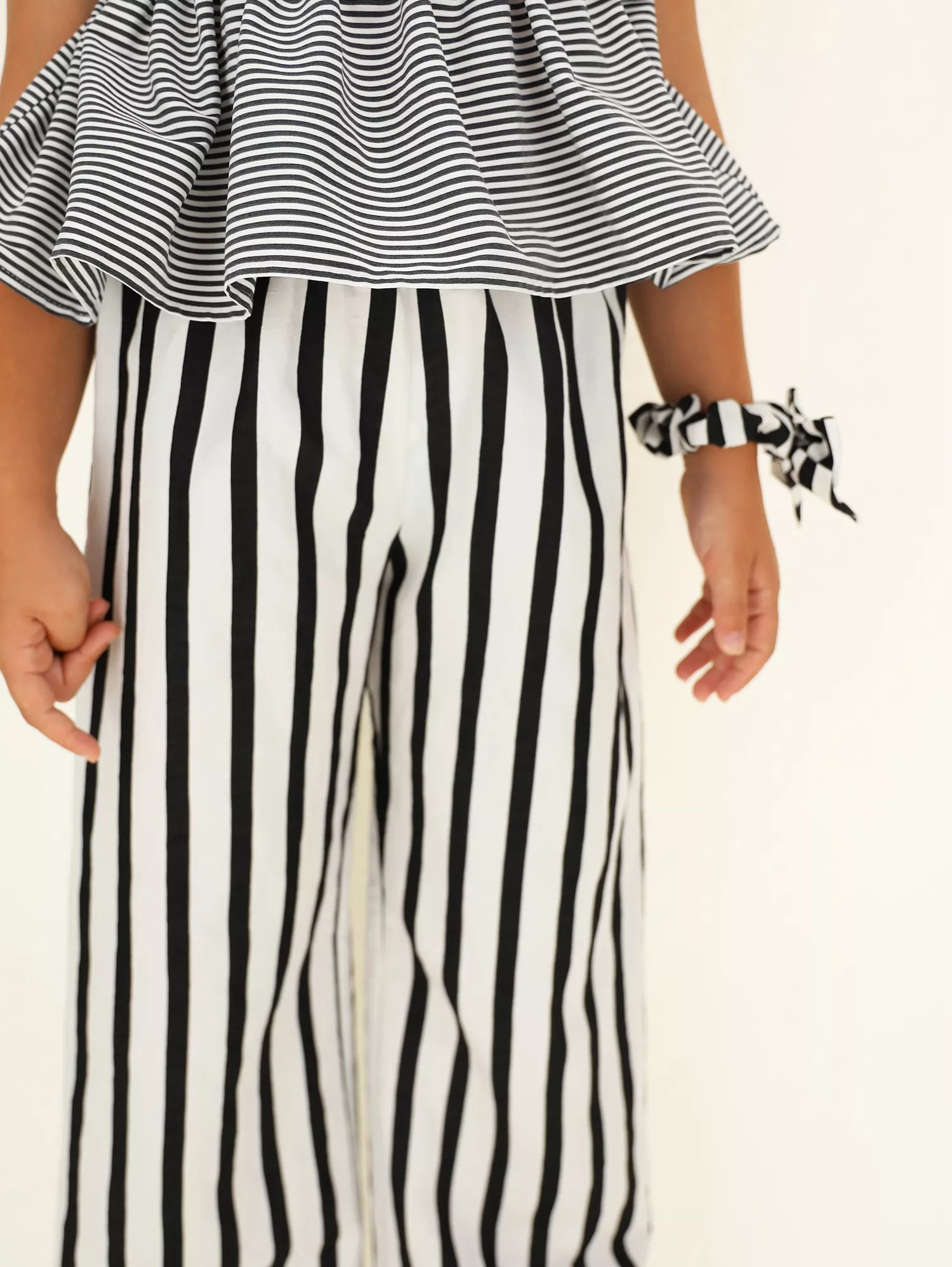 Pantalone lungo a righe Monnalisa, in viscosa, vita elasticizzata, righe orizzontali a contrasto sull'orlo.