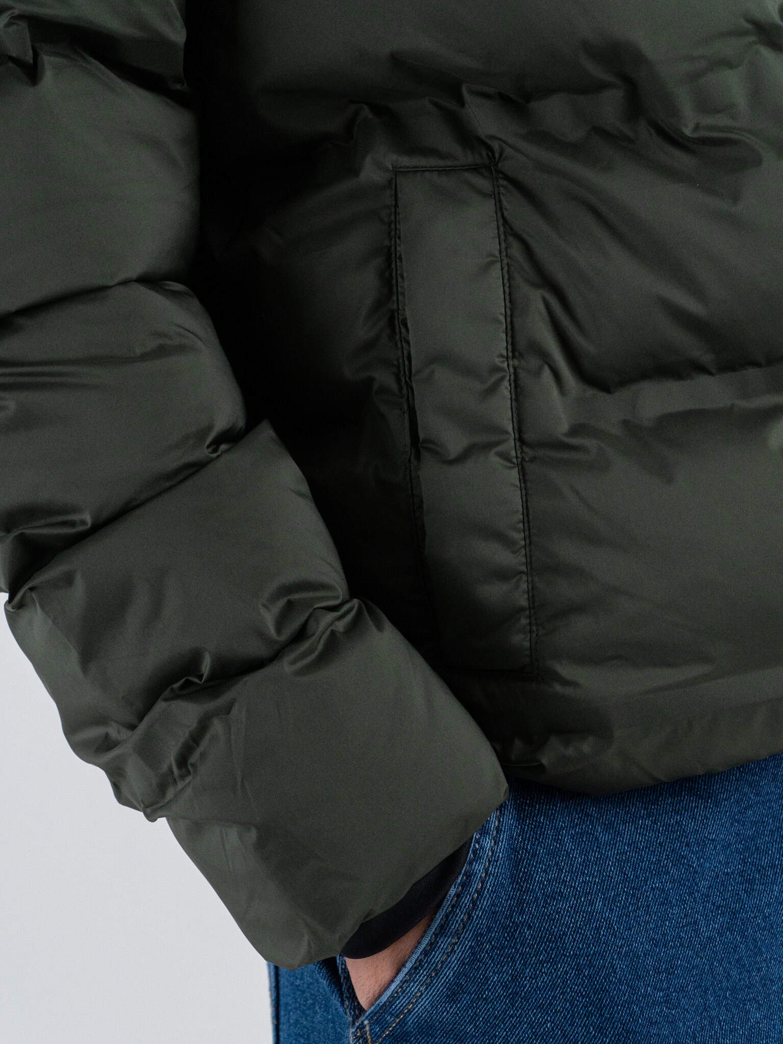 * Giacca imbottita.* Chiusura frontale con zip.* Tasche laterali con bottoni a pressione.* Colletto alto.* Logo presente sul lato sinistro del petto.* Modello trapuntato.
