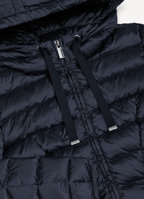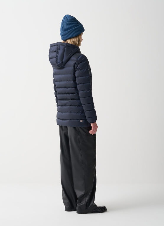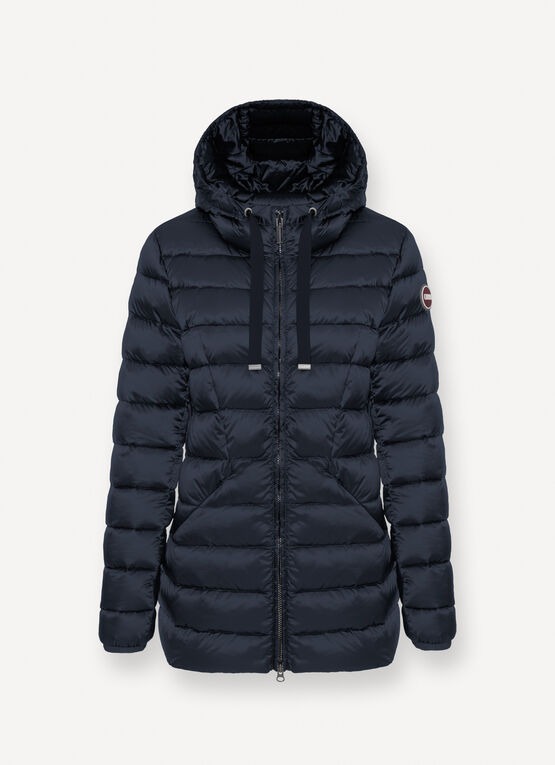 Chiusura con zip doppio cursoreCappuccio fisso con coulisse di regolazioneTasche laterali con zipImbottitura in piuma naturaleTessuto 100% riciclatoLogo Colmar Originals applicato sulla manica sinistraPatch "C" applicato sul retro