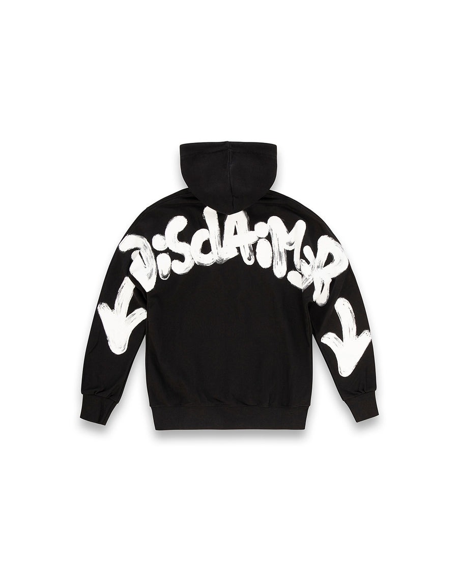 Maglia uomo con cappuccio in felpa.Stampa logo sul petto e maxi stampa grafica sul retro.100% Cotone
