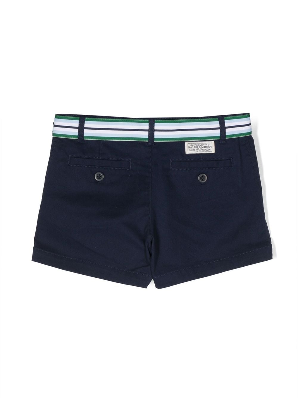 Shorts chino in cotone, chiusura frontale con zip e bottone, vita regolabile dall'interno con elastico e bottone, due tasche verticali sul davanti e due a filetto con bottone sul retro, passanti in vita, etichetta logo cucita sul retro, cintura abbinata removibile inclusa