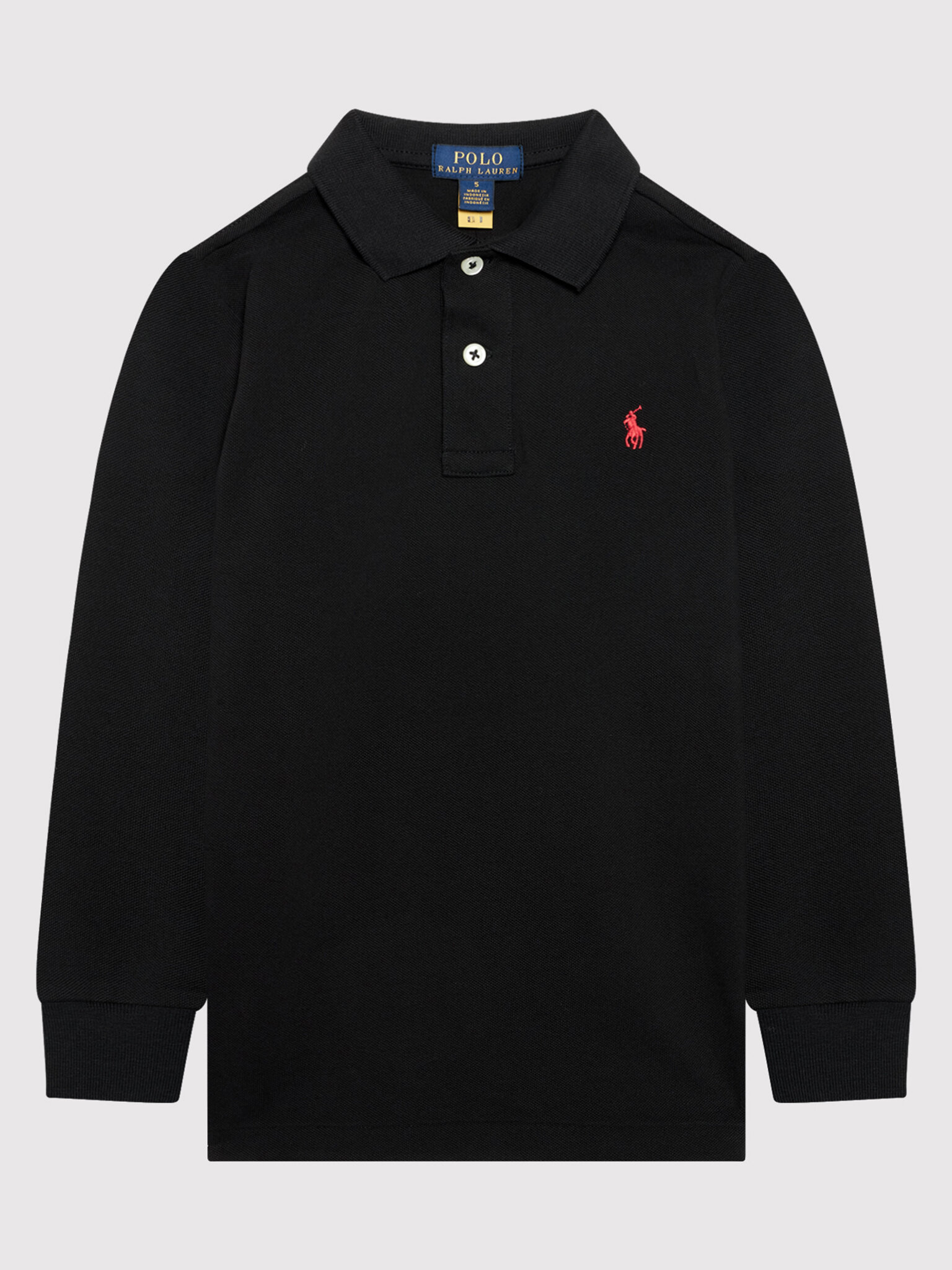 Maglia a maniche lunghe. Colletto classico. Chiusura a due bottoni. Polsini a costine. Iconico logo ricamato sul petto.