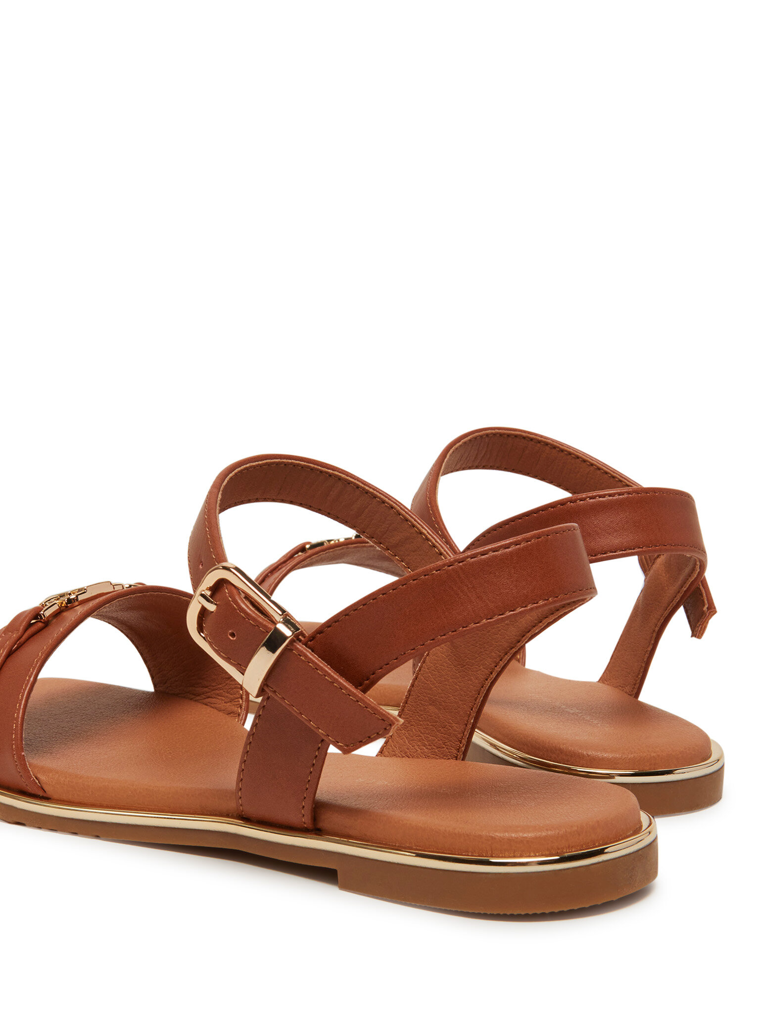 Sandali piatti.Cinturino alla caviglia regolabile con fibbia.Dettaglio dorato sulla fascia.Suola piatta.