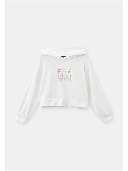 Felpa da bambina Emporio Armani EA7 con cappuccio, stampa frontale, manica lunga, chiusura slip on.