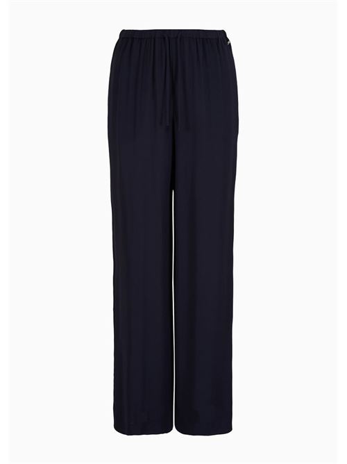 Pantaloni caratterizzati dalla gamba diritta realizzati in tessuto georgette di viscosa. Il modello presenta chiusura con bottone e zip, tasche laterali e posteriori.