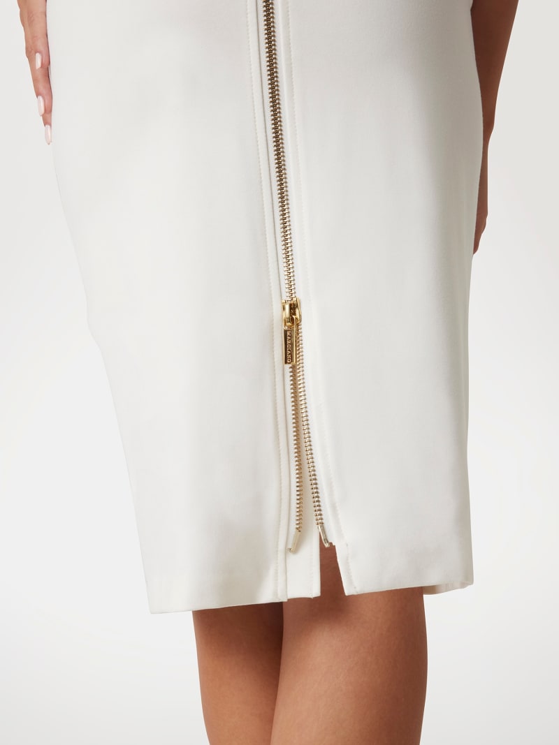 Vestito bodycon midi in jersey di misto viscosa stretch.Elegante scollo a barca.Senza maniche.Zip a doppio cursore e a tutta lunghezza sul retro.