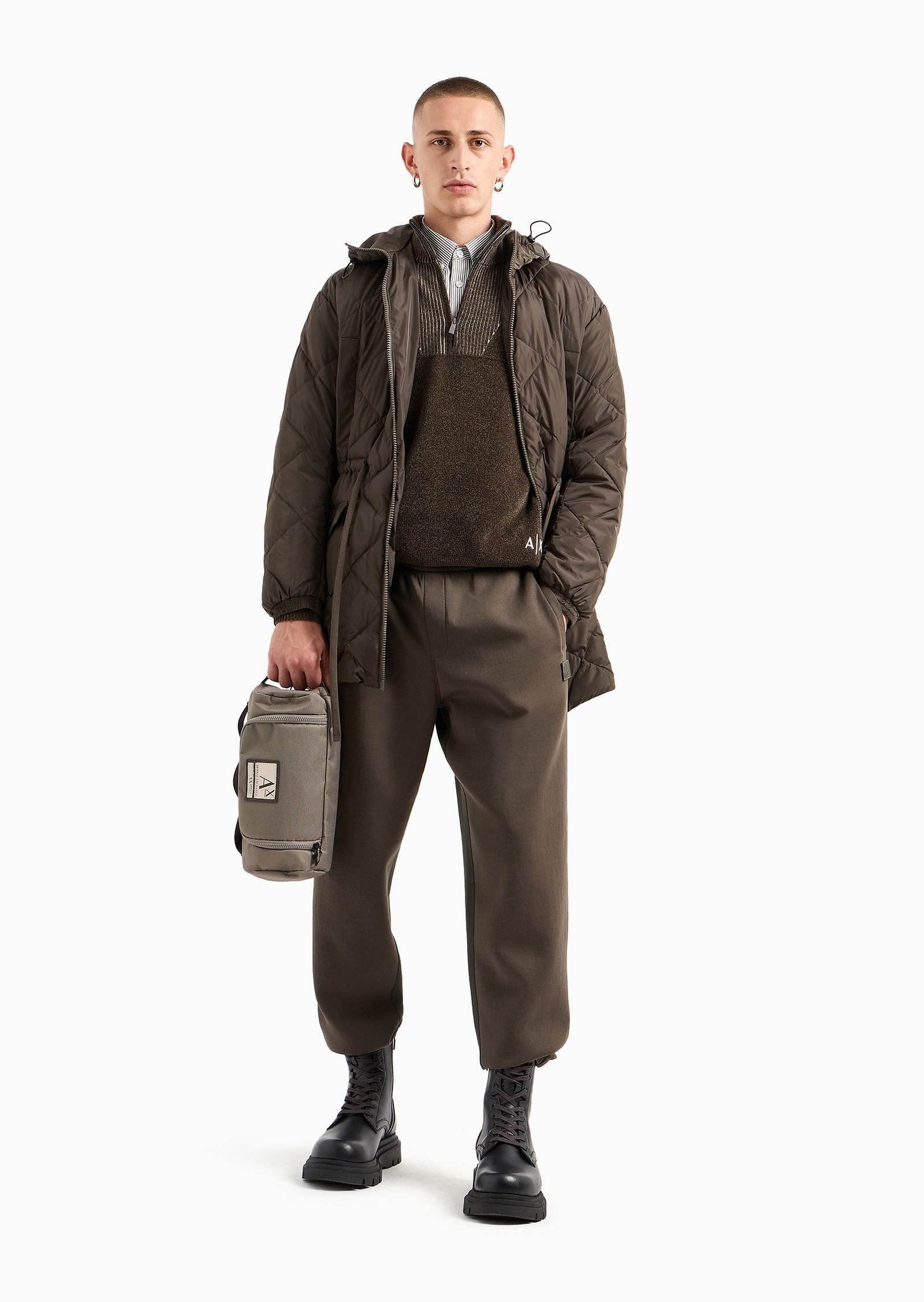 - Maglione con collo alto a zip.- Dettaglio a coste sul petto e sul collo.- Logo A|X ricamato sull'orlo inferiore.- Maniche lunghe con polsini a coste.- Vestibilità regolare.- Stile casual e confortevole.