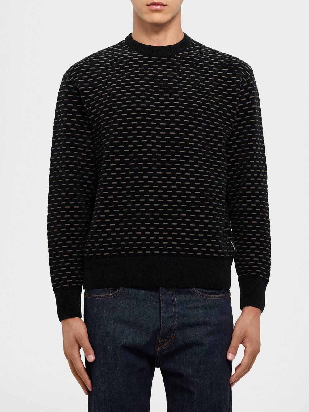 - Maglione a girocollo con motivo a trama geometrica.- Maniche lunghe con polsini a coste.- Orlo a coste per una vestibilità aderente.- Tessuto lavorato per un effetto tridimensionale.- Vestibilità regolare.- Stile casual e moderno.