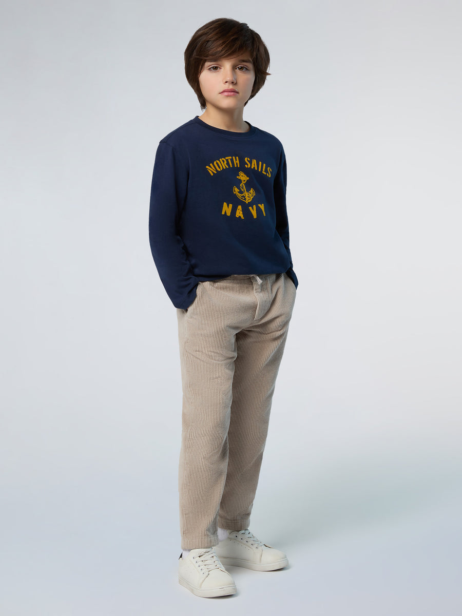 Questa t-shirt da bambino celebra lo spirito North Sails con la maxi stampa flock sul davanti. Il modello è realizzato in jersey di cotone organico che rispetta l'ambiente perché limita le emissioni e il consumo di acqua rispetto alle fibre tradizionali. Si caratterizza per il design versatile con collo a giro e maniche lunghe.