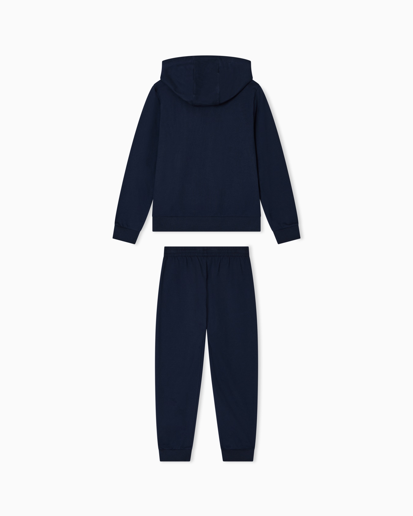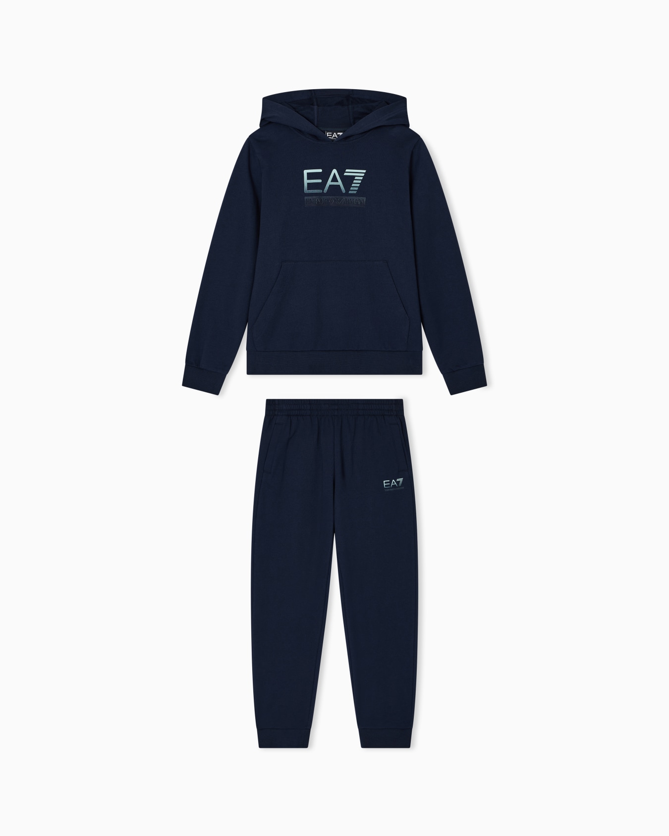 La tuta EA7 combina comodità e stile dinamico per assicurare comfort durante lo sport e i momenti di relax dei più piccoli. Questo modello, realizzato in puro cotone, si compone di una felpa con cappuccio e tasca a marsupio abbinata a un pantalone jogger, resi subito riconoscibili dalla personalizzazione del logo EA7. Due capi che possono essere indossati anche separatamente, dando vita a look perfetti anche per la scuola e il tempo libero.