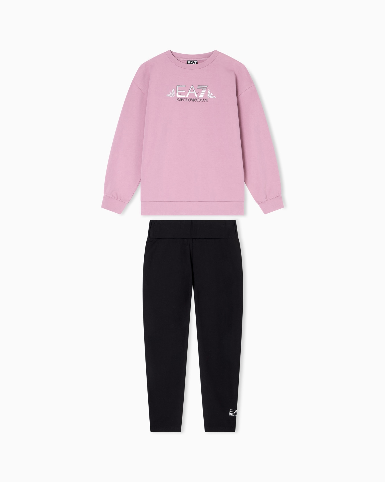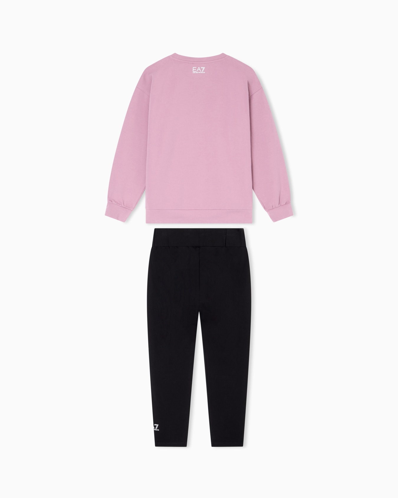 Un set essenziale e semplice, realizzato in morbido cotone stretch. Il modello si compone di una felpa girocollo a maniche lunghe e un leggings, entrambi personalizzati con logo a contrasto. Un modello che conquisterà le più piccole, perfetto per i momenti di gioco o per il tempo libero.