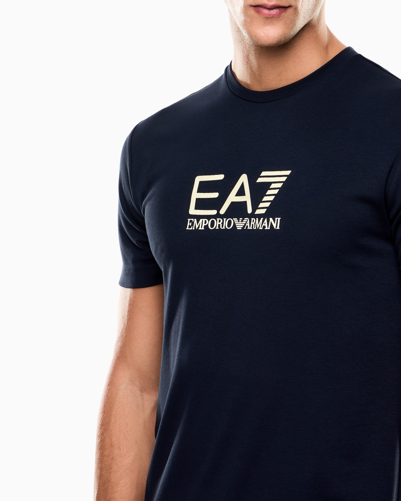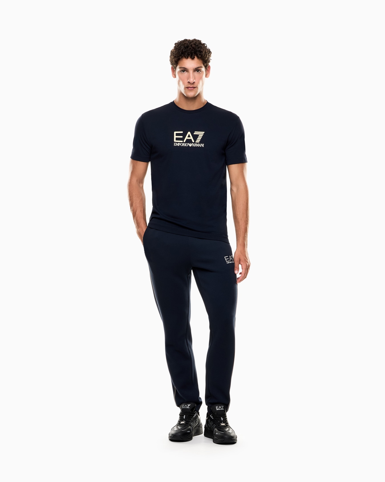 T-shirt essenziale dalla vestibilità slim, realizzata in misto viscosa stretch. Un modello perfetto per il tempo libero, personalizzato dal maxi logo EA7 sul petto. Uno stile più ricercato ed elegante caratterizza la proposta Gold Label: capi realizzati in tessuti confortevoli e personalizzati dall'inconfondibile tocco gold, per uno stile sporty chic.