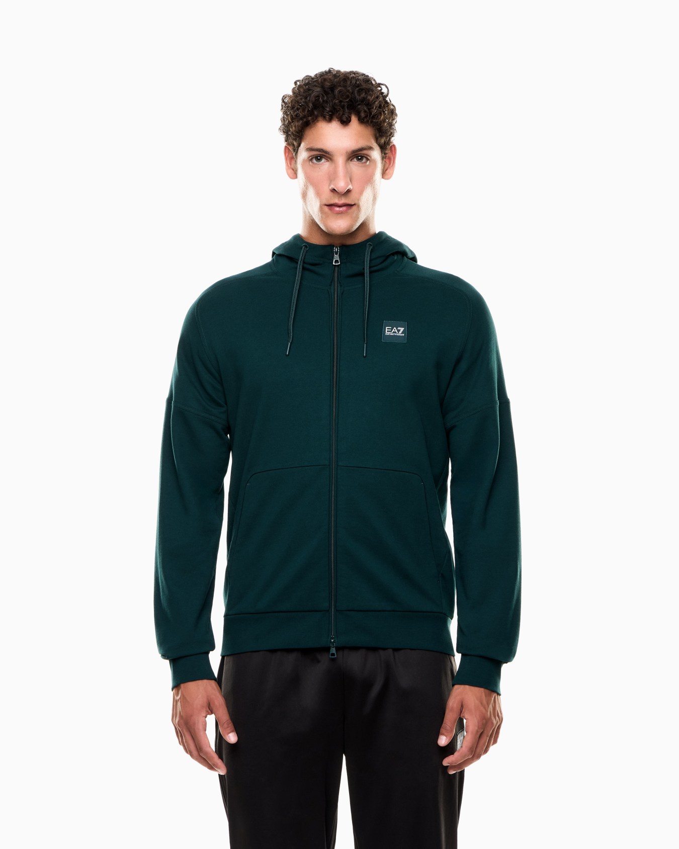 Felpa con cappuccio realizzata in morbido cotone, tessuto che assicura il massimo comfort, ideale per il tempo libero o il pre e post allenamento. Il modello, pensato per chi cerca un mix perfetto tra funzionalità e design essenziale, è dotato di chiusura full zip e due tasche a marsupio ed è personalizzato dal patch con logo EA7 sul petto. Una proposta perfetta per chi ricerca un look discreto ma distintivo.