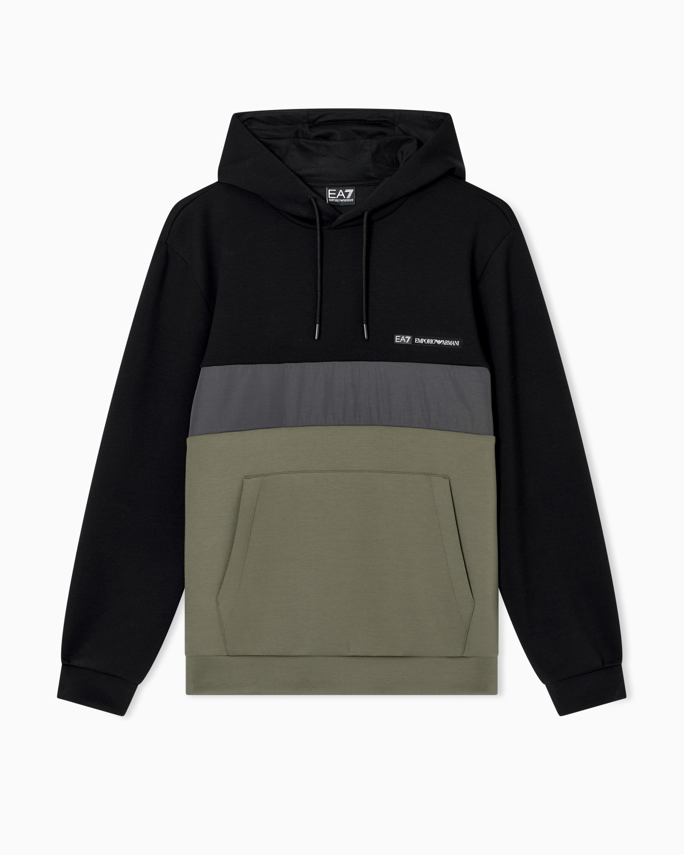 Felpa con cappuccio dalla vestibilità regular, realizzata in nylon e misto viscosa stretch e caratterizzata dall'effetto color block realizzato in palette di stagione. Un modello versatile, perfetto per il tempo libero, personalizzato dal logo EA7 sul petto. Il capo è parte della linea Athletic Color Block, una proposta d'ispirazione streetwear per capi giovani e dinamici, caratterizzati da una palette colore moderna e a audace.