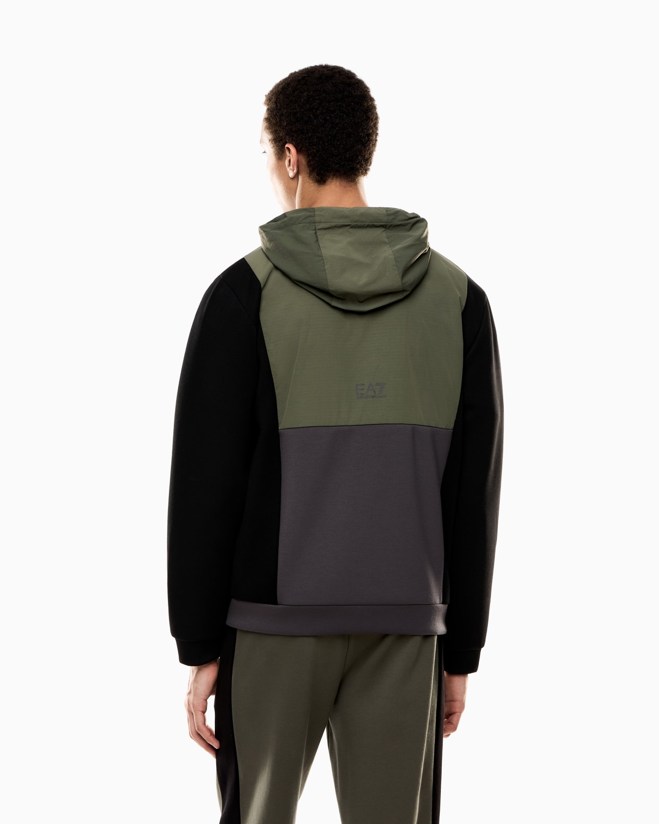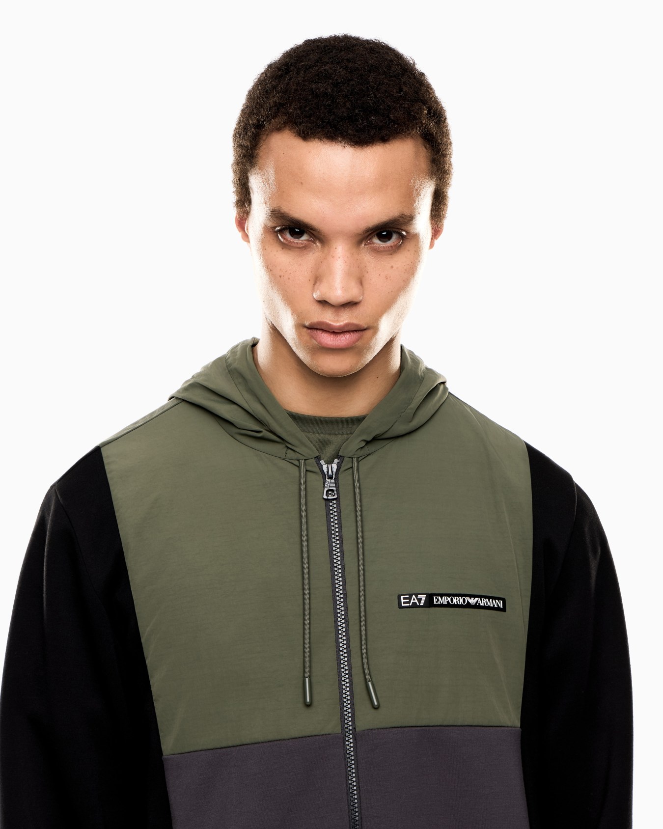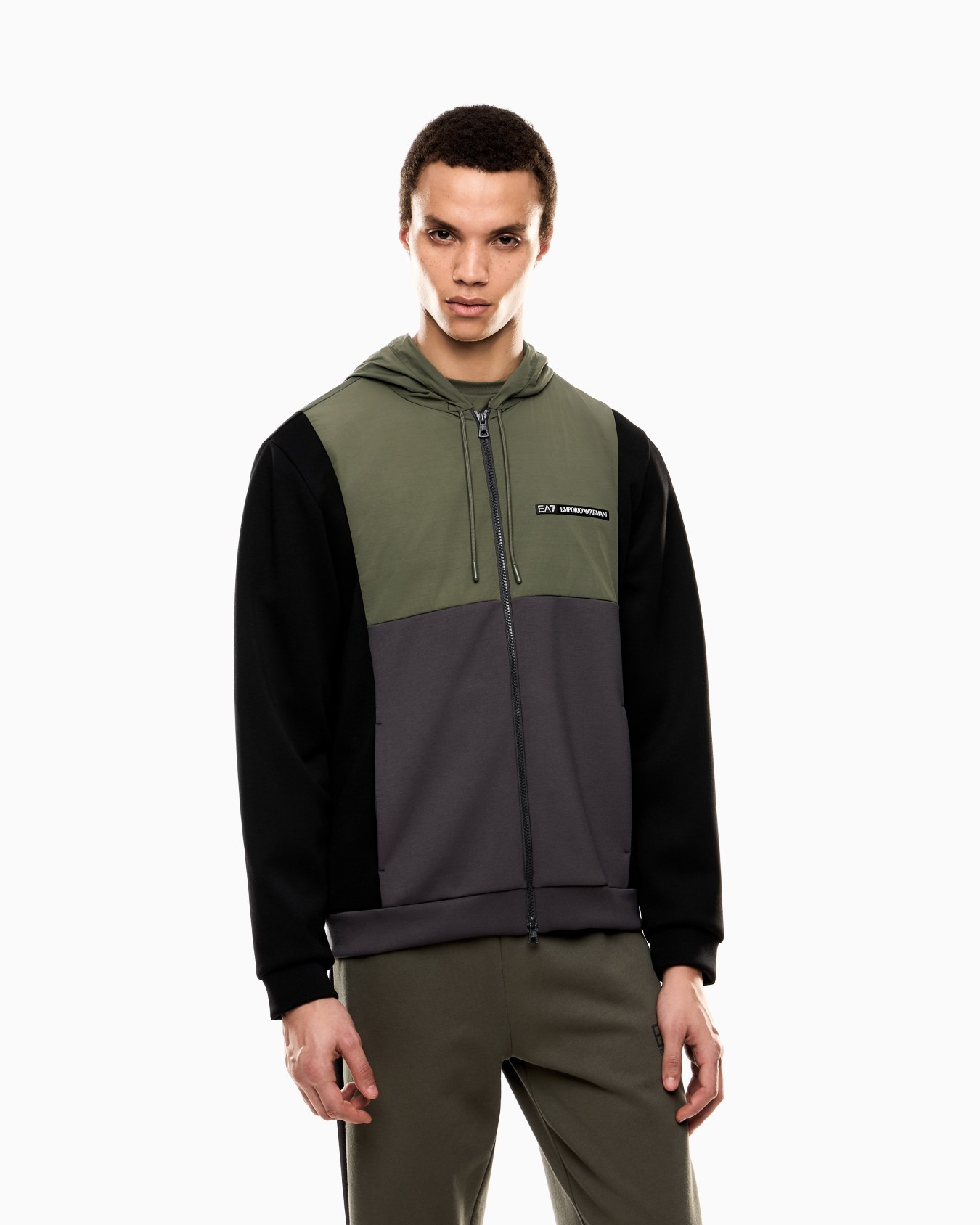 Felpa con cappuccio e zip dalla vestibilità regular, realizzata in nylon e misto viscosa stretch e caratterizzata dall'effetto color block realizzato in palette di stagione. Un modello versatile, perfetto per il tempo libero, personalizzato dal logo EA7 sul petto. Il capo è parte della linea Athletic Color Block, una proposta d'ispirazione streetwear per capi giovani e dinamici, caratterizzati da una palette colore moderna e a audace.
