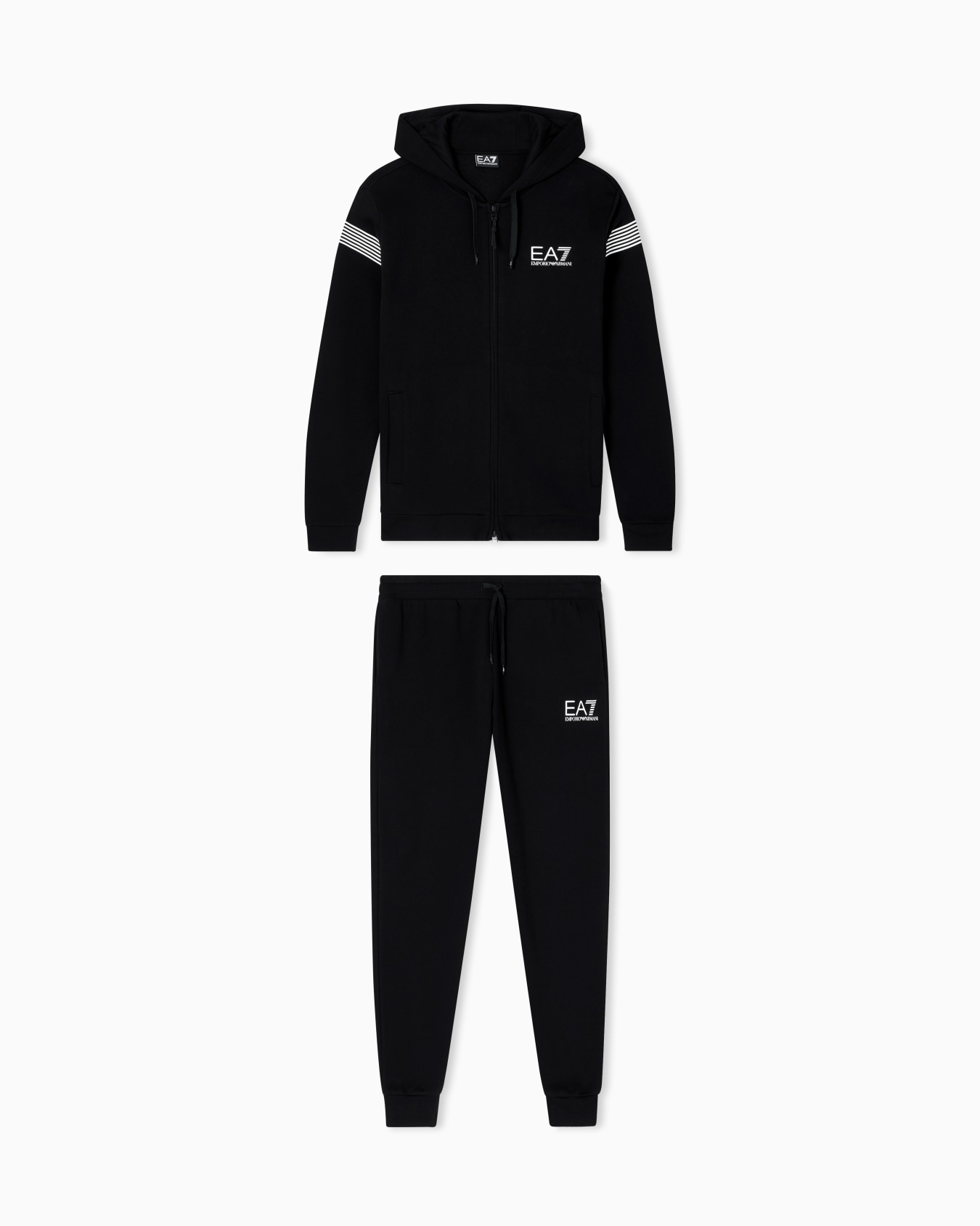 Felpa con cappuccio, chiusura con zip, due tasche laterali, logo EA7 a contrasto sul petto e dettaglio 7 linee sulle spalle