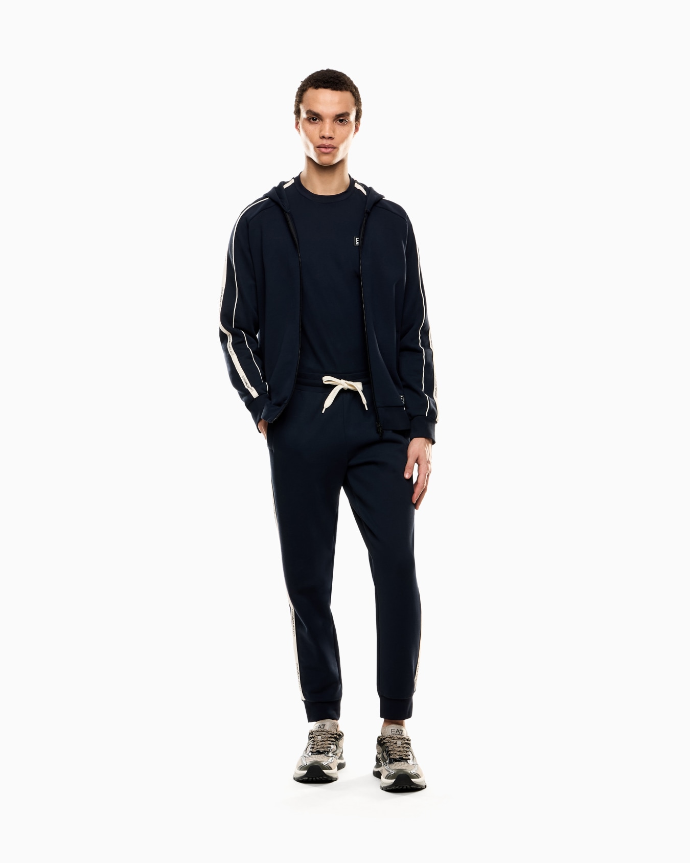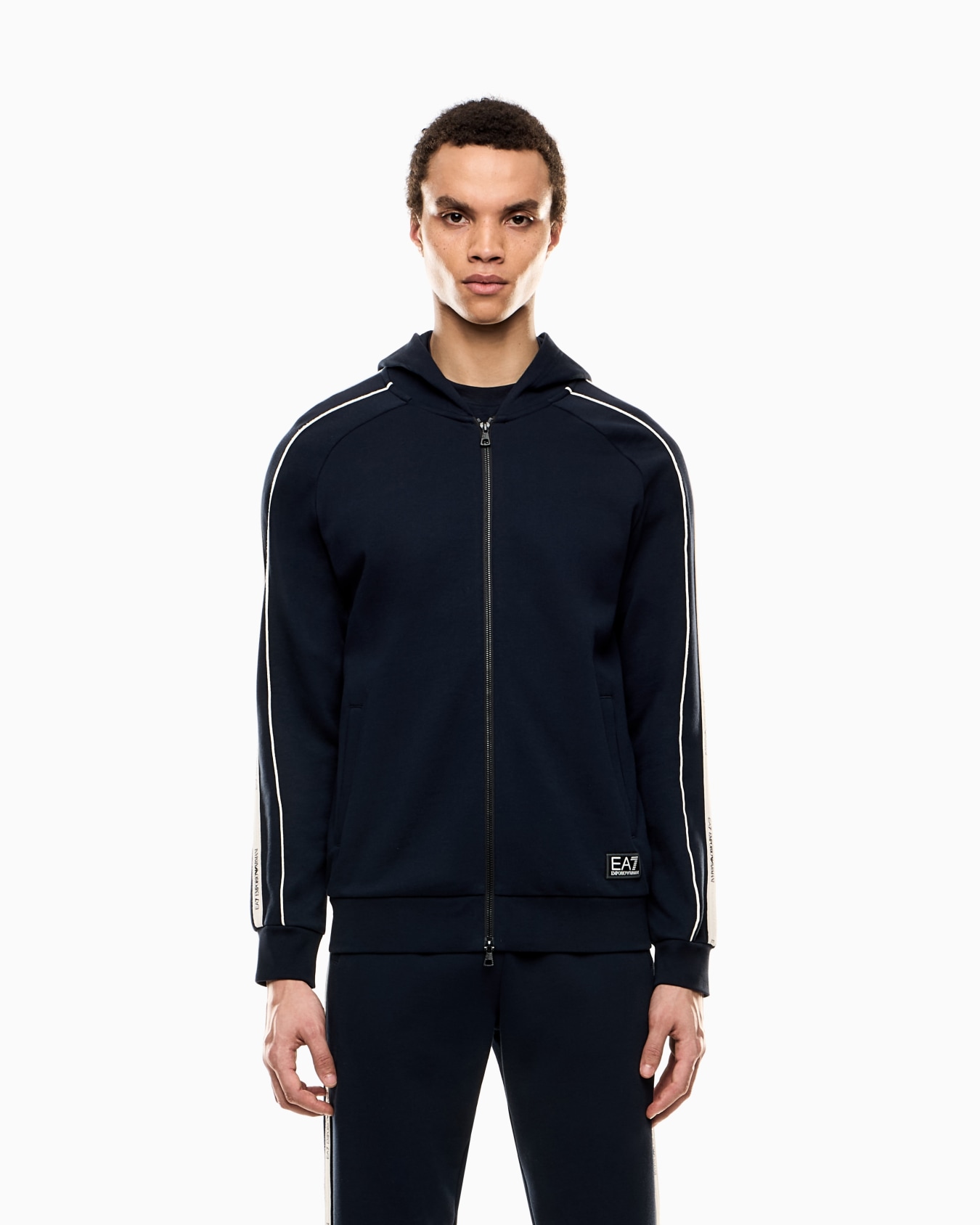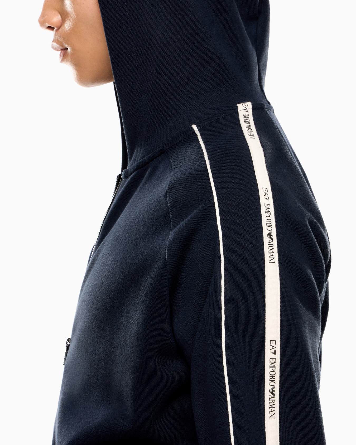 Felpa con cappuccio e chiusura full zip realizzata in misto cotone, dalla vestibilità regular. Il modello è personalizzato dal dettaglio con logo tape sulle spalle e dal logo EA7 sul petto, che riprende altri creazioni della linea Logo Series.