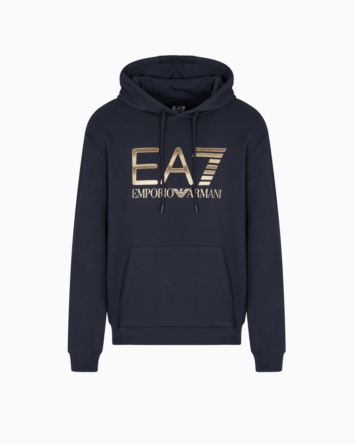 Felpa con cappuccio realizzata in cotone stretch, dalla vestibilità regular. Il modello è personalizzato dal maxi logo EA7 sul petto con effetto neon, che riprende altri creazioni della linea Logo Series.