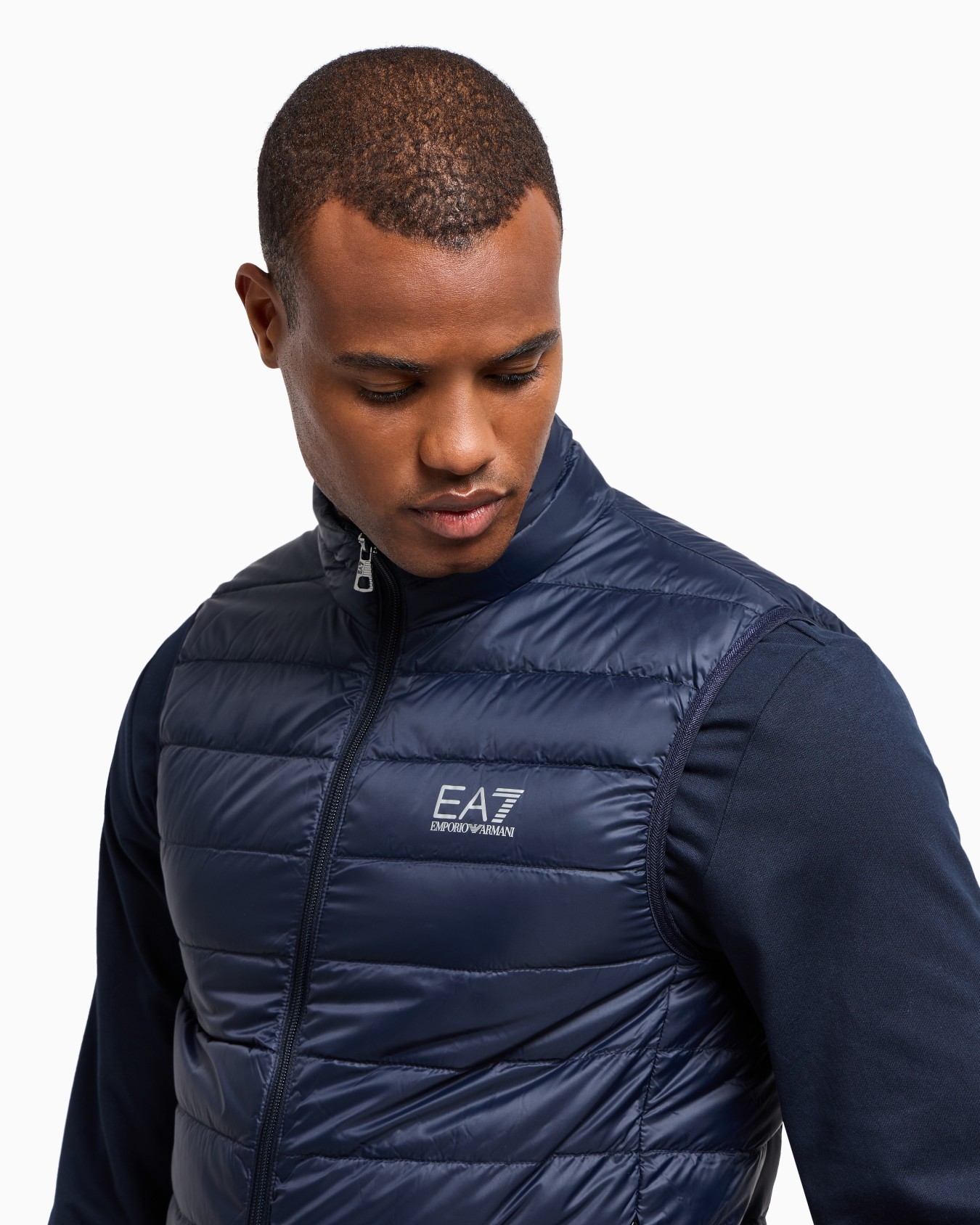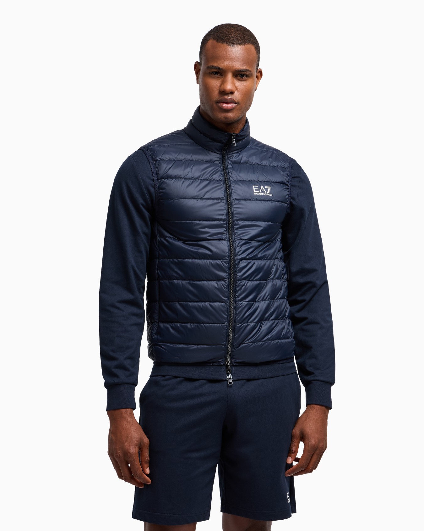 Questo gilet della linea Core Identity combina l'imbottitura in piuma d'oca con il tessuto tecnico per dar vita a un capo caldo e versatile adatto allo sport e al tempo libero. Il modello è dotato di chiusura frontale con zip, due pratiche tasche laterali ed è personalizzato dal logo EA7 a contrasto sul petto. Il capo è packable e può essere richiuso nella sua dust bag.