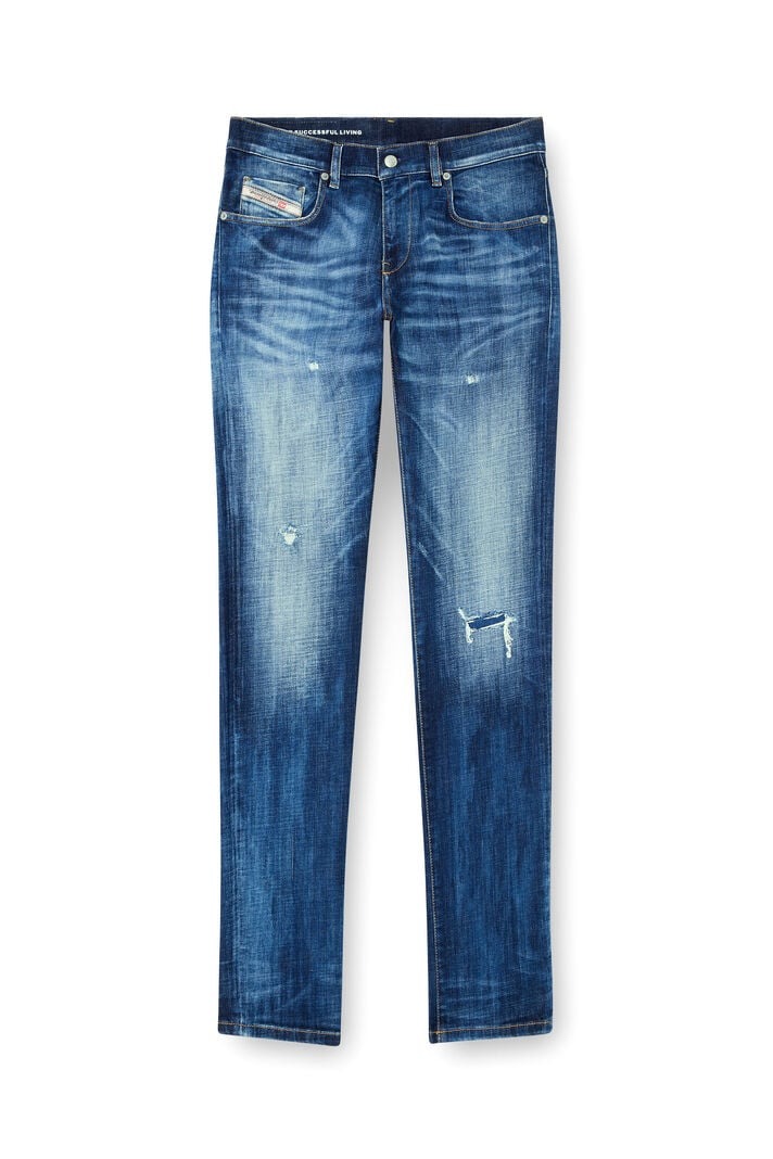 Denim comfort in cotone parzialmente riciclato. Il lavaggio blu scuro vanta un look DNA distintivo, con whisker a contrasto e piccole abrasioni lungo tutta la gamba. Il ginocchio ripped and repaired completa il design.