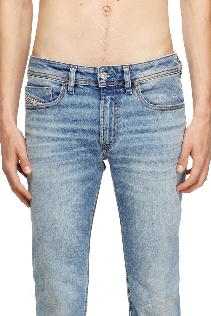 Questo denim stretch blu chiaro offre un'interpretazione discreta dell'estetica DNA di Diesel. Il look autentico e leggermente vissuto è arricchito da una distintiva finitura dirt sulle ginocchia.