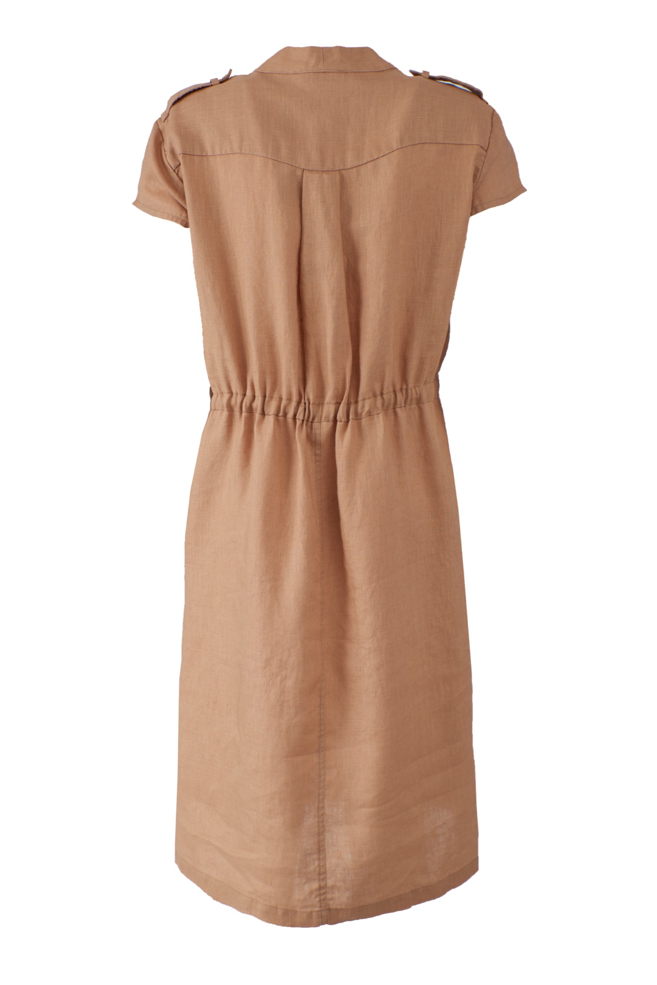 Abito per donna con chiusura a bottoni centrali, tasche frontali in stile cargo, maniche corte, lunghezza media