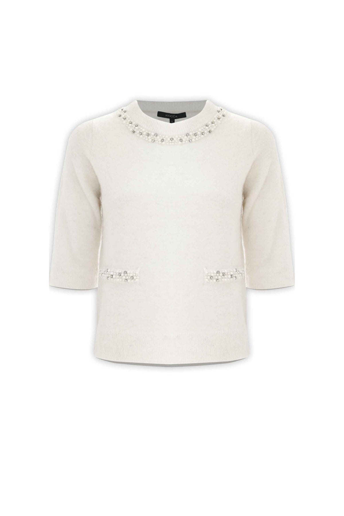 * Maglia con decorazioni sul collo.* Presenti applicazioni sui polsini.* Tasche applicate sul davanti.* Logo sul retro del collo.* Maniche a tre quarti.* Tessuto strutturato.