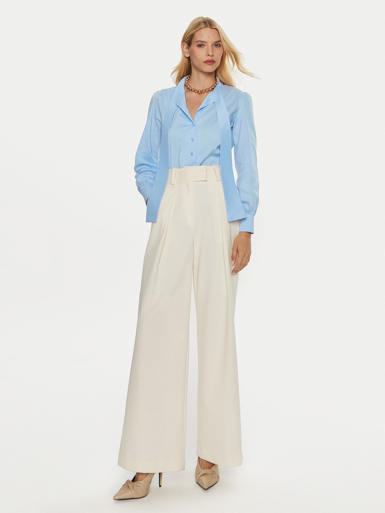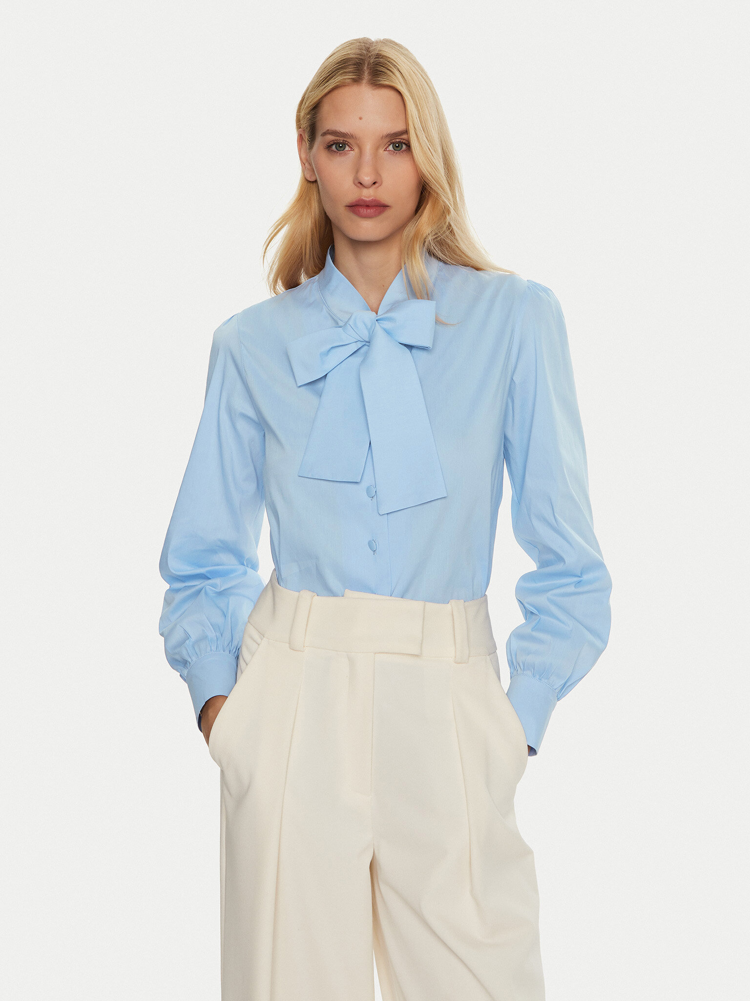 Camicia con chiusura colletto tramite fiocco, maniche lunghe con balze, vestibilità comoda