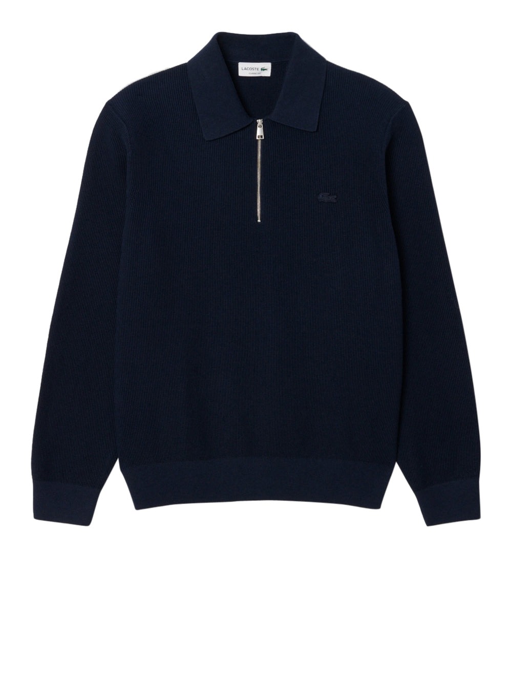 Il pullover da uomo con collo polo e mezza zip firmato Lacoste è un emblema di eleganza e comfort. Realizzato in morbido misto cotone e lana, rappresenta l'unione perfetta tra stile casual e tradizione sportiva. Questo capo dal design lussuoso è arricchito con dettagli in maglia di alta qualità e il coccodrillo tono su tono, simbolo di raffinatezza.