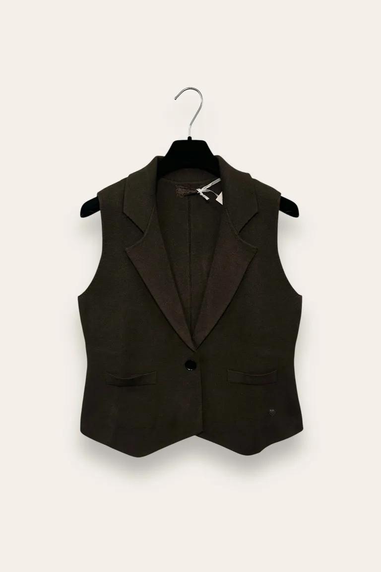* Gilet elegante senza maniche* Rever classico* Chiusura frontale con bottone* Tasche decorative frontali* Linea sagomata e femminile* Stile versatile e raffinato